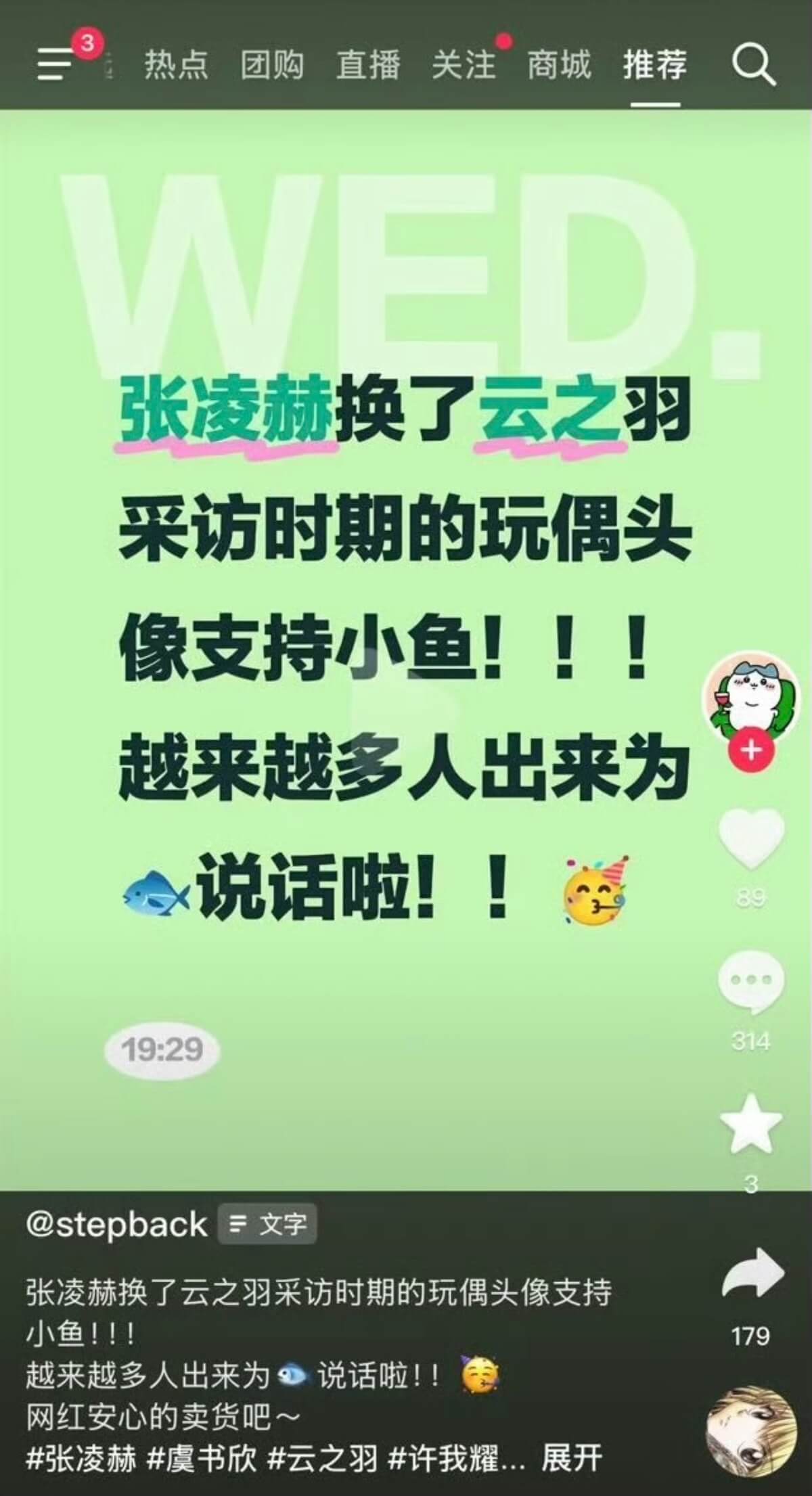就有粉絲發帖,表示張凌赫將頭像換成了《雲之羽》採訪時期的頭像,被指力挺虞書欣!還表示越來越多人站出來為她發聲👇