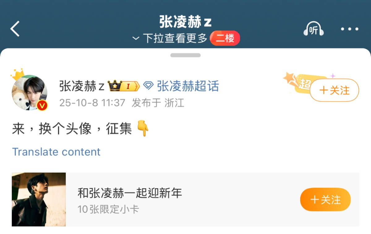 隨著粉絲熱議發酵,張凌赫方粉絲闢謠,表示並非無故更換頭像,而是他空降超話和粉絲的互動👇