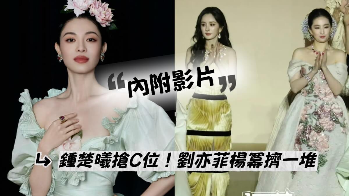 鍾楚曦的站位立刻引發熱議,網友找直播截圖,她一開始就往C位去,而且幾個影后包括周冬雨、馬思純和張小斐都站在邊上👇