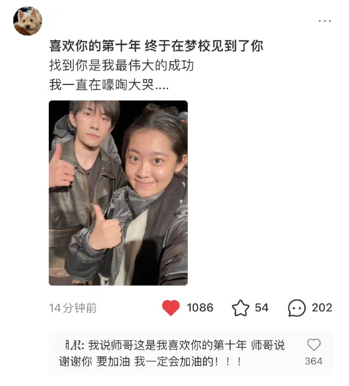 還鼓勵了喜歡自己10年的學妹粉絲👇