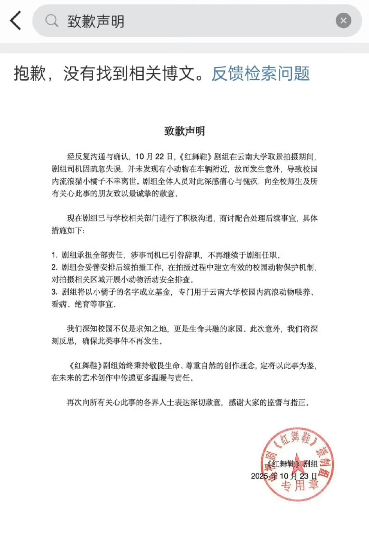 目前搜尋官微,已經找不到相顧道歉啟事⋯