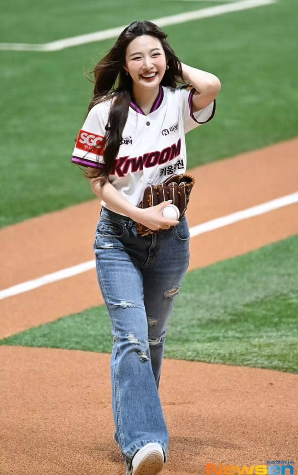 6月份當開球嘉賓,看起來瘦了點,但對比韓國女愛豆的身材,依然被列在「胖」的一族!