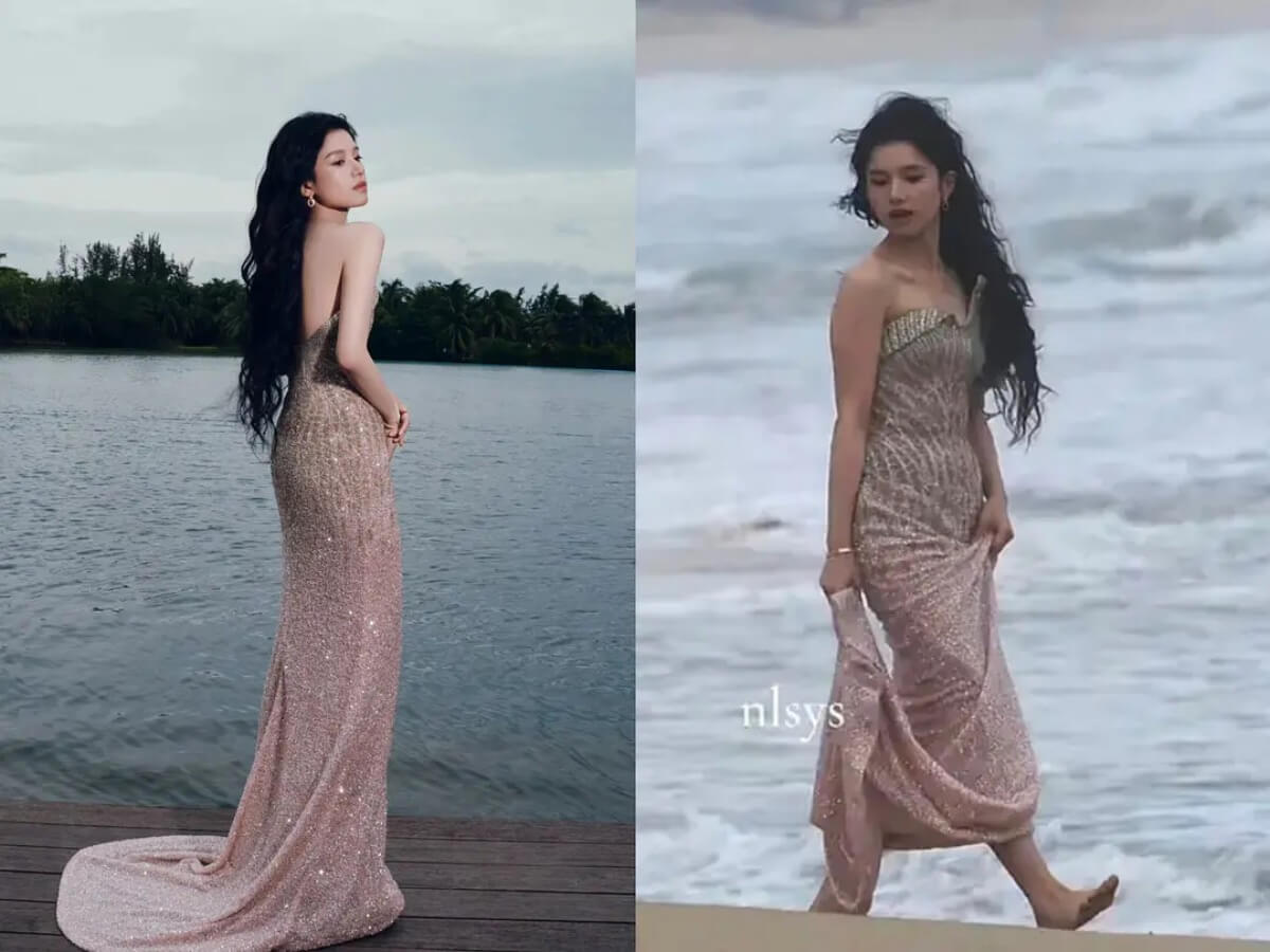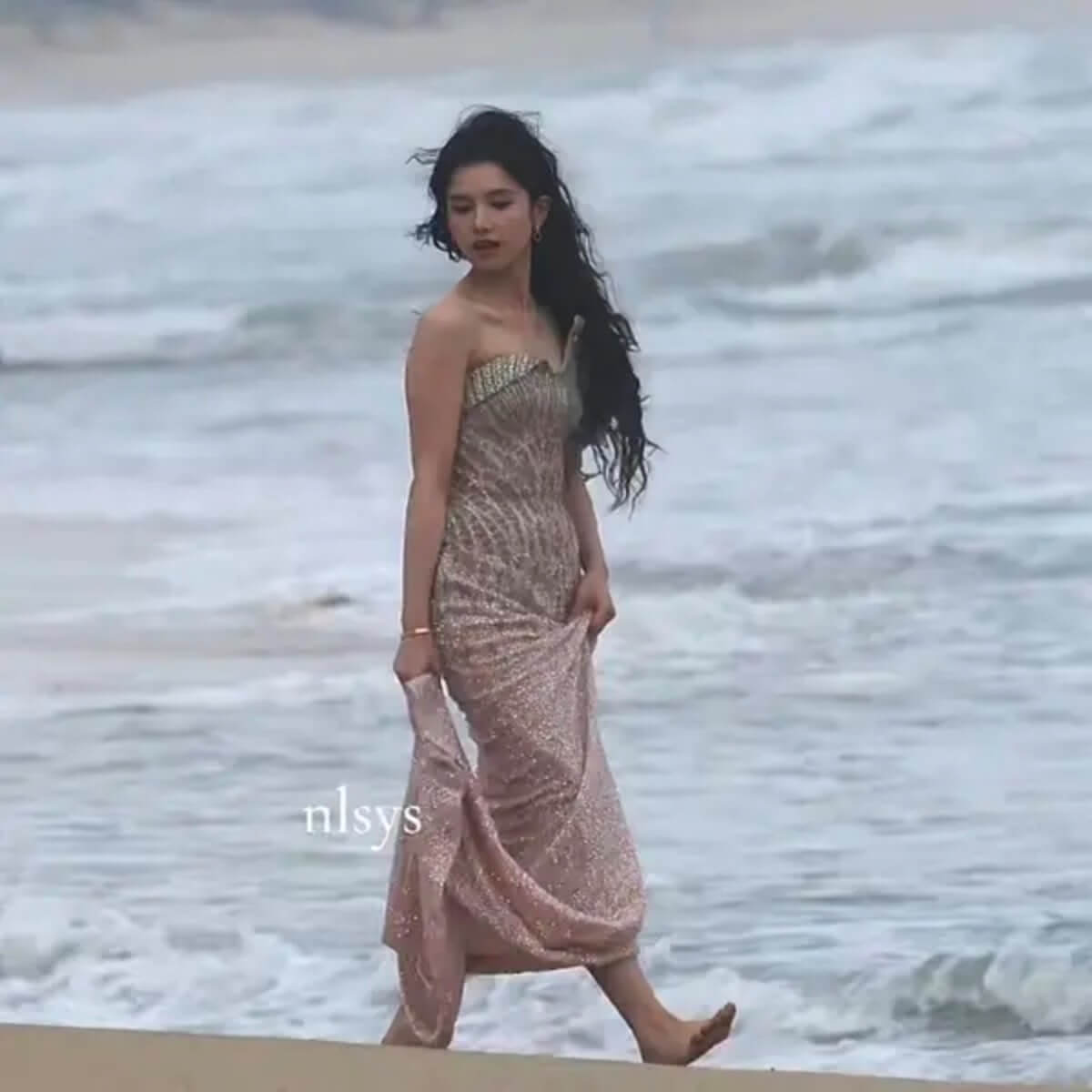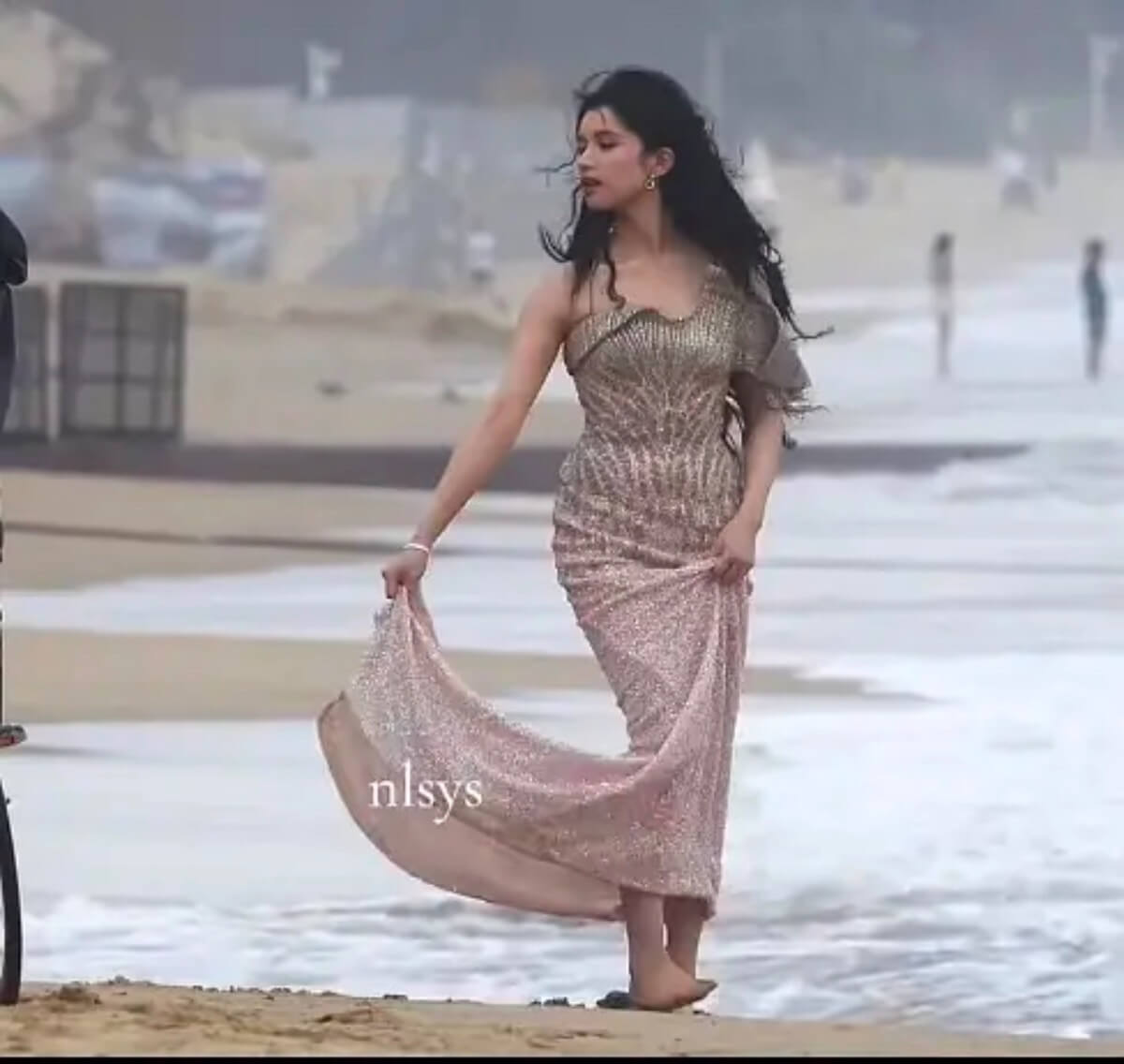 沒想到,有網友發出了張婧儀在海邊赤足拍攝寫真時的照片,身材比例引起了熱議,先來看一下👇