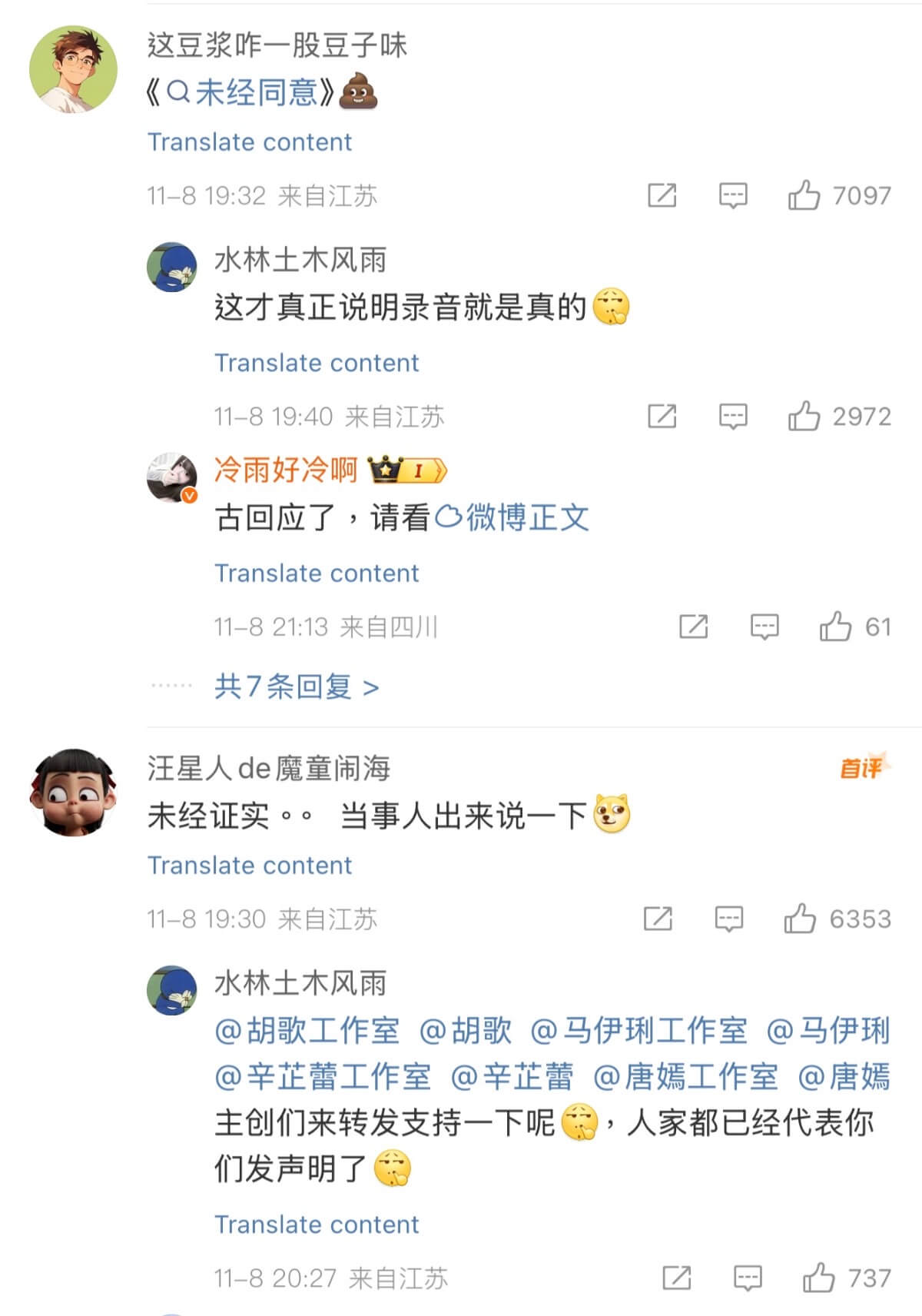 隨著爭議,《繁花》劇組火速發聲明,譴責古二在網絡平台上發佈大量未經證實的非法錄音,引起網絡輿論爭議,並造成巨大的不良社會影響。