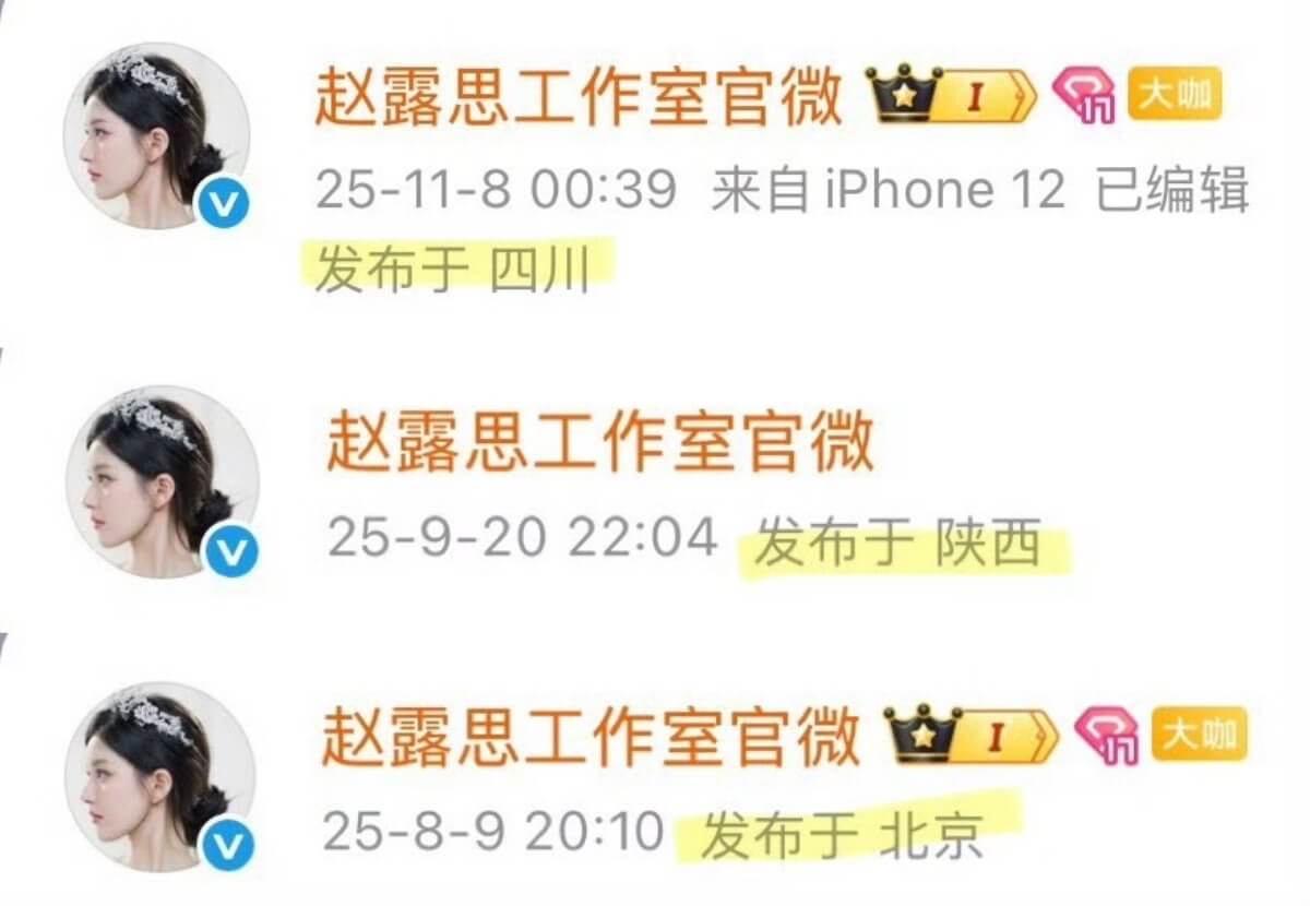 最重要的是,工作室IP已經變更成四川,趙露思老家就在四川成都👇