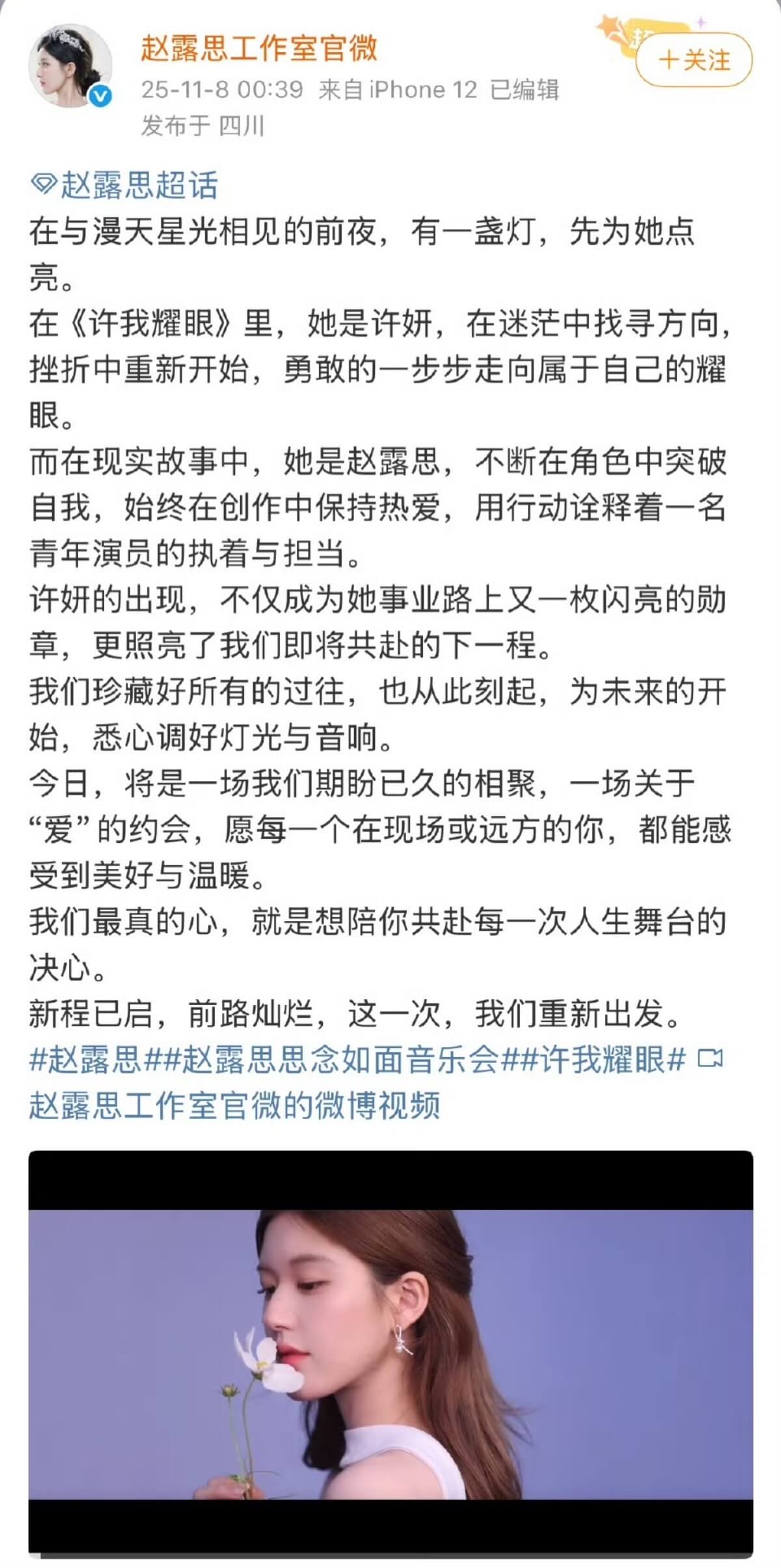 8號這天,已經停更數月的趙露思工作室微博突然更新,宣布「新程已啟,前路燦爛,這一次,我們重新出發」!