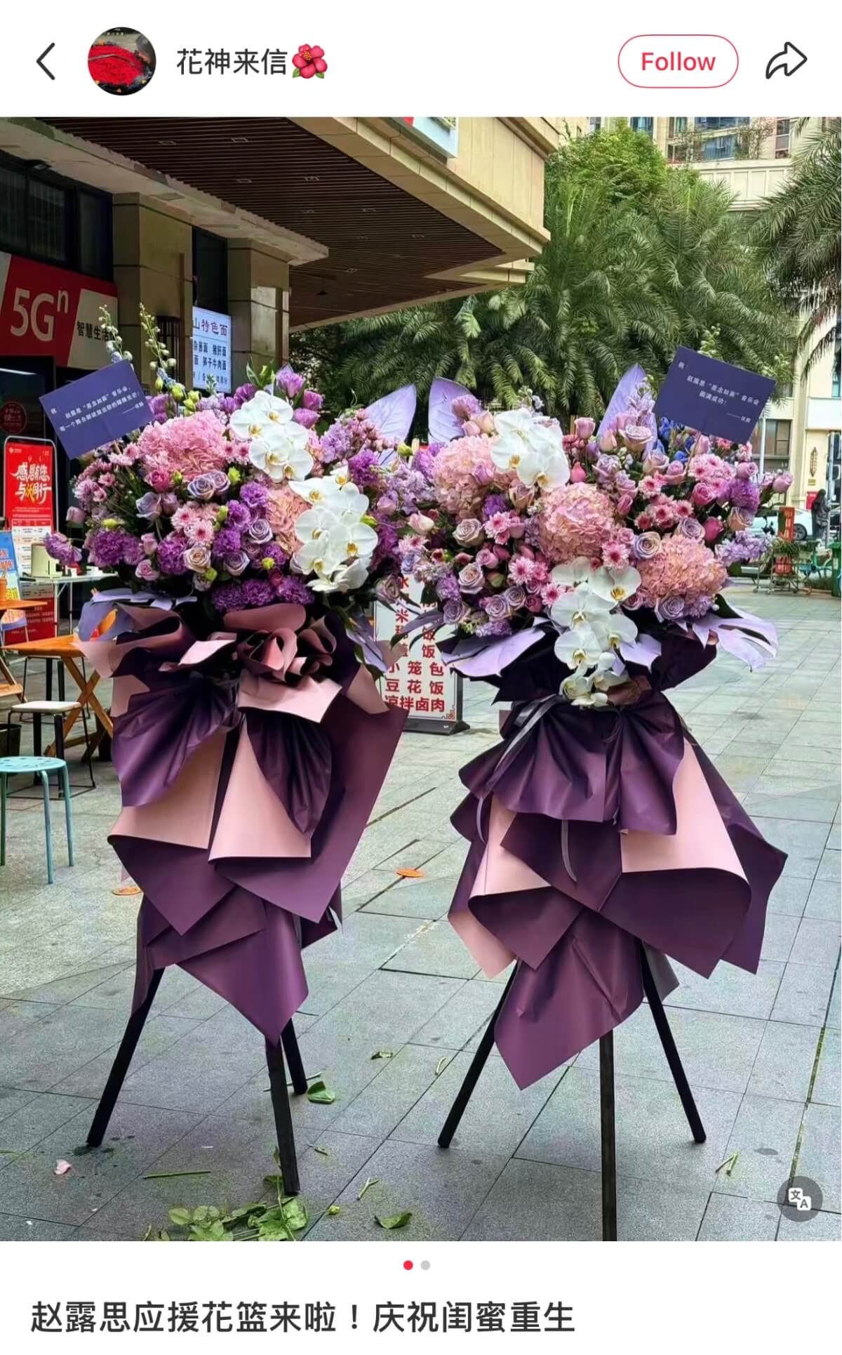 在生日會現場,不管是曾經合作的、正在合作的,還是從未合作的品牌,都紛紛送上花籃,足見趙露思的號召力!