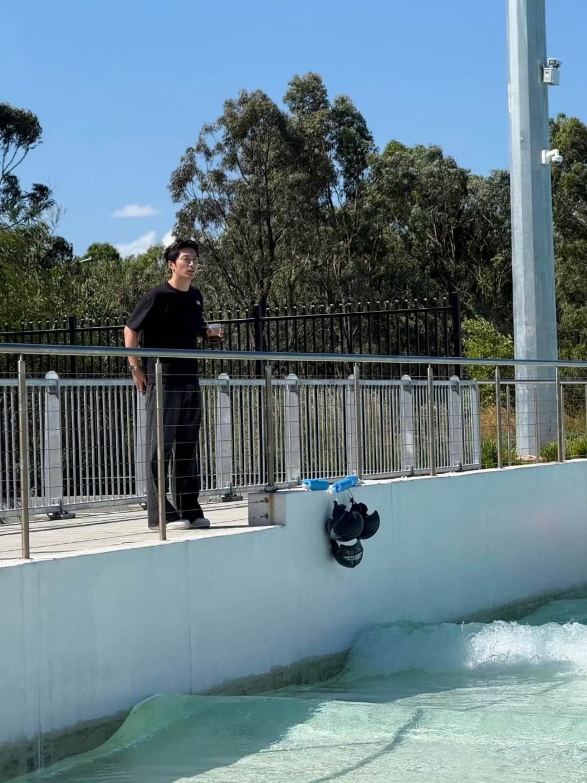 另一張照片則只有竇驍,似乎在看何超蓮衝浪👇