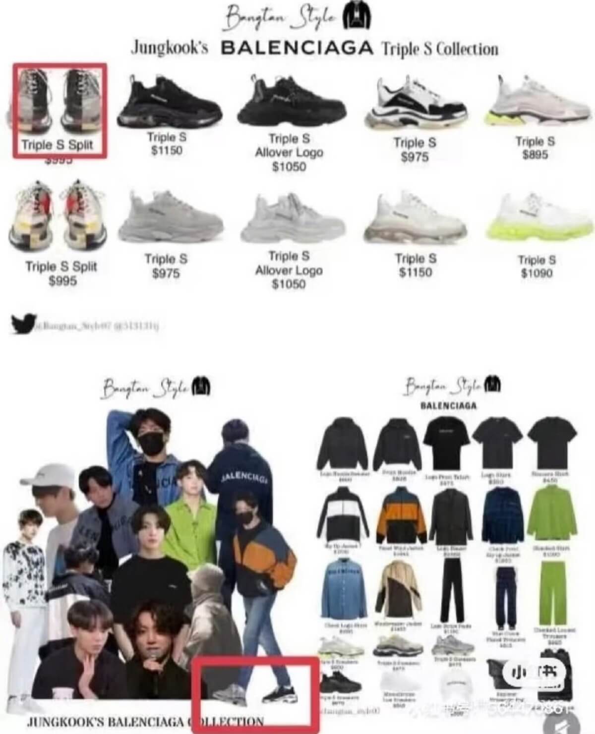 但網友扒出田柾國有雙巴黎世家的鞋子,正是陰陽色,而他也很常被拍到穿這雙👇