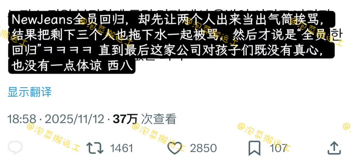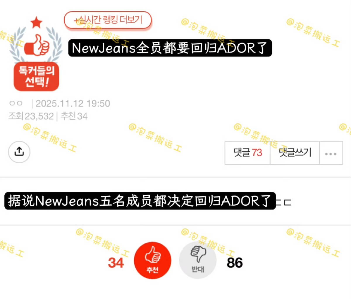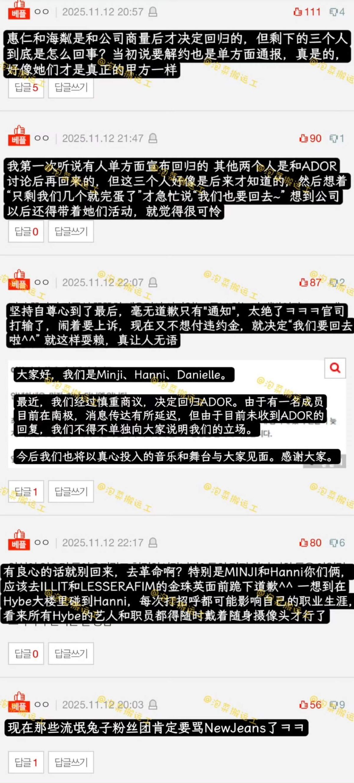 在Minji、Hanni、Danielle透過代理律師發表立場之後,Ador第一時間表示會將確認他們的真正意圖。當時,就有粉絲認為這是公司的”詭計“,故意營造內訌的情況👇
