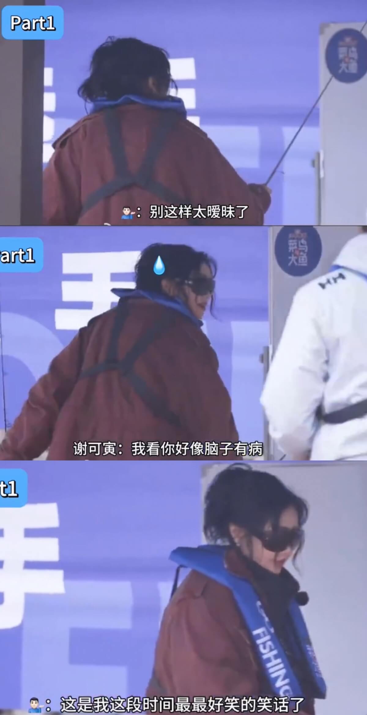 在這檔垂釣類節目中,謝可寅提醒搭檔徐濱“小心竿兒”(指魚竿),結果沒想到徐濱回應:「別這麼叫我,太曖昧了」,隨後持續用這個諧音梗來調侃。