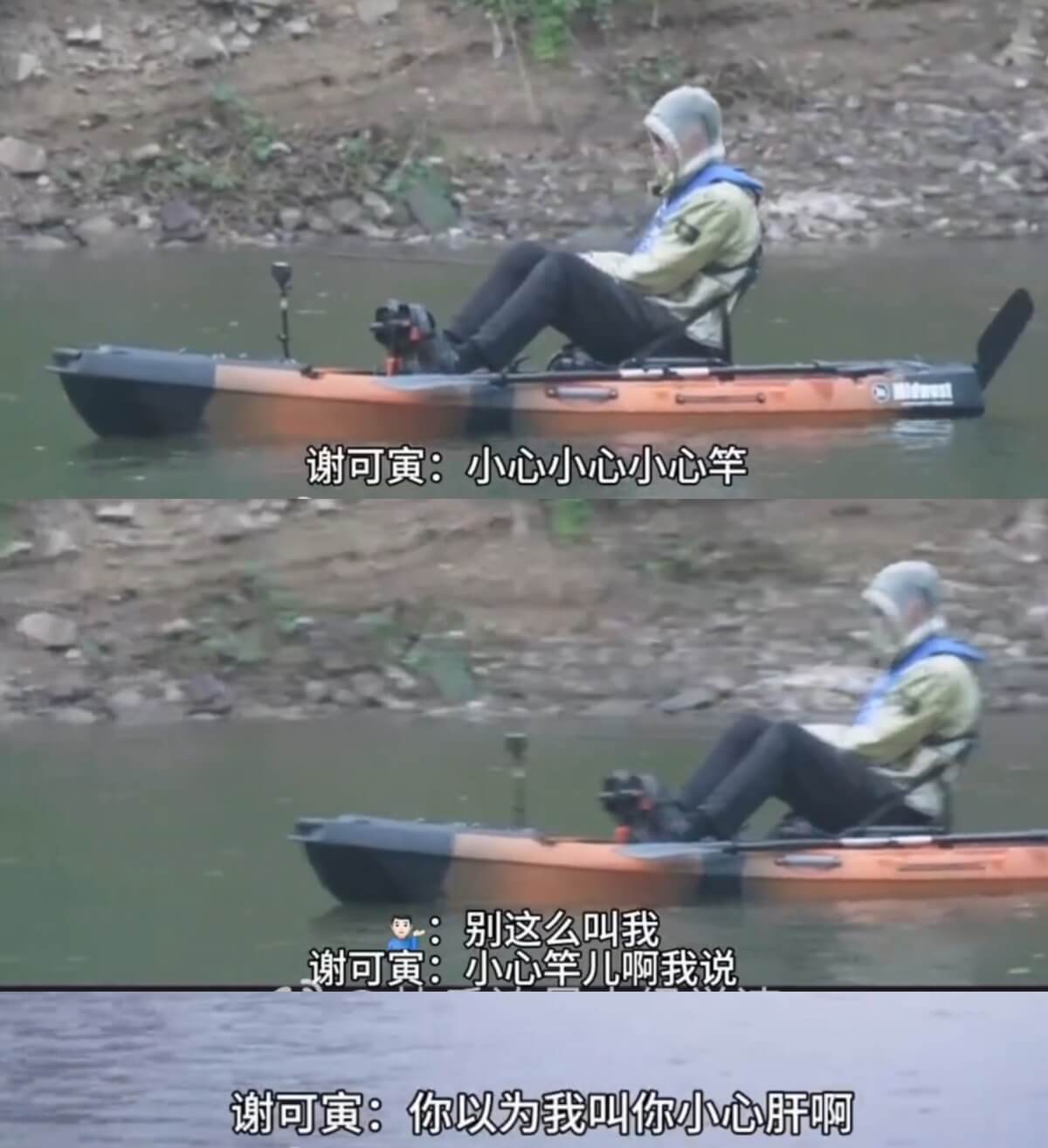 在這檔垂釣類節目中,謝可寅提醒搭檔徐濱“小心竿兒”(指魚竿),結果沒想到徐濱回應:「別這麼叫我,太曖昧了」,隨後持續用這個諧音梗來調侃。