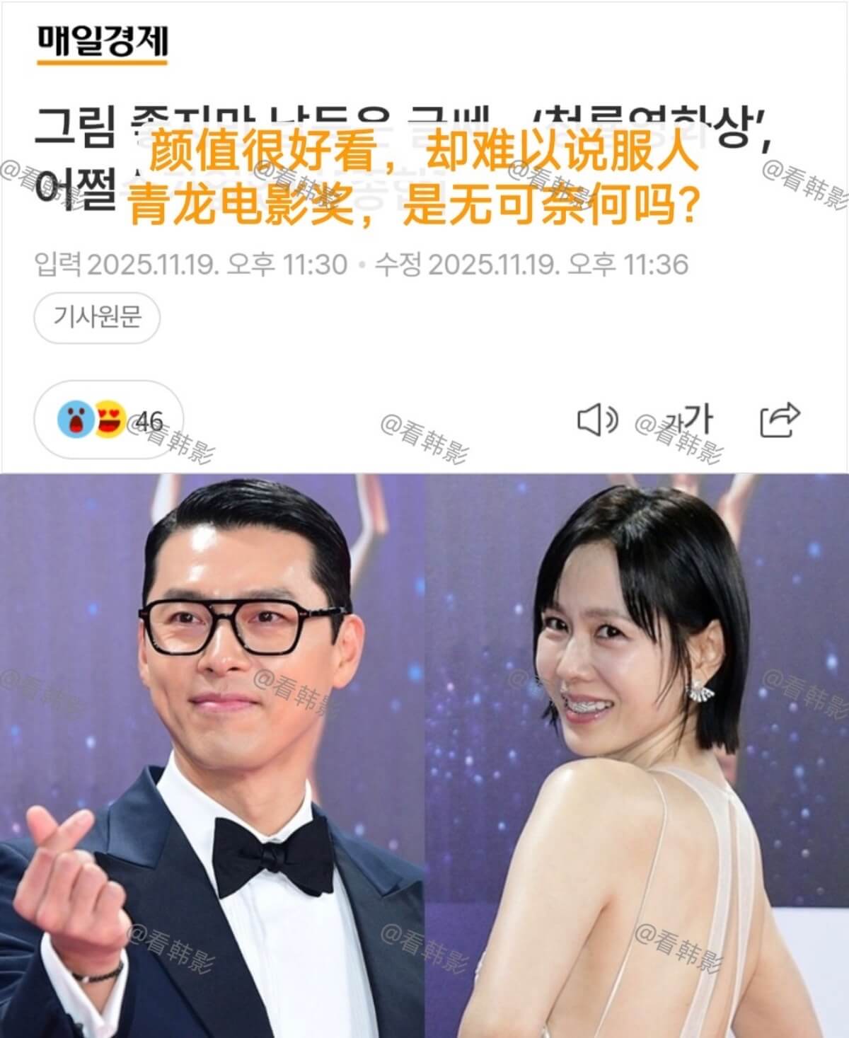 只不過得獎之後,在韓網評論似乎並不正面。先有韓媒以「畫面顏值是漂亮的,話題性是最棒的,卻是難以說服人的結果」來總結這次青龍獎。