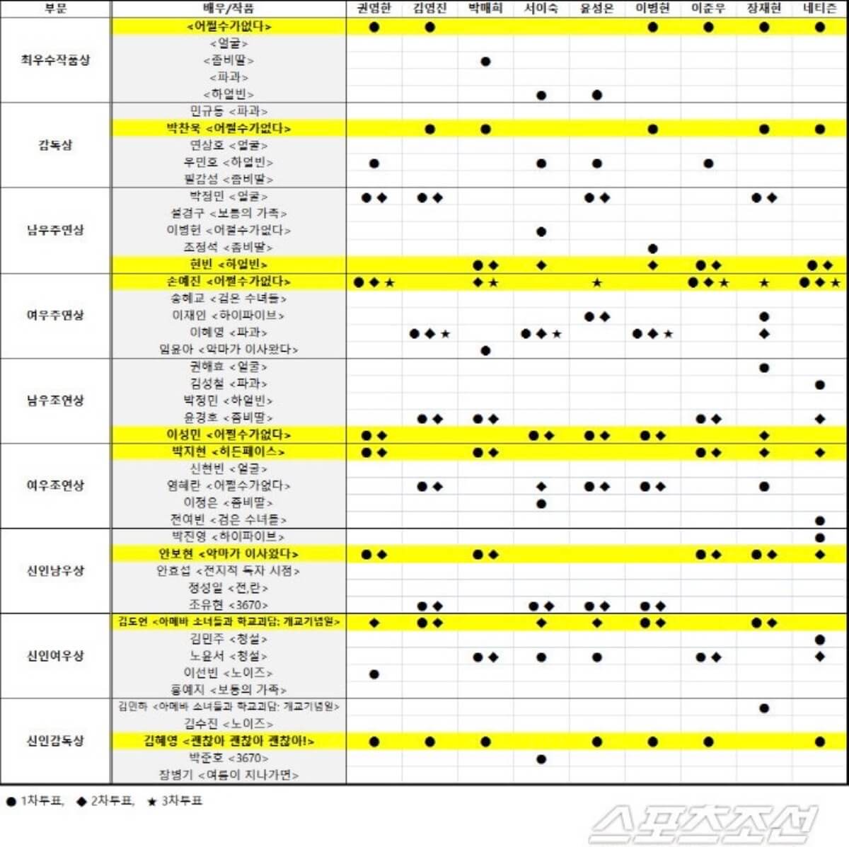 孫藝珍則以《無可奈何》中的母親角色二封青龍影后,並藉此成為韓國影史首位完成「三大獎(青龍、百想、大鐘)影后二輪大滿貫」的女演員。上一位大滿貫影后,還是坎城影后全度妍。