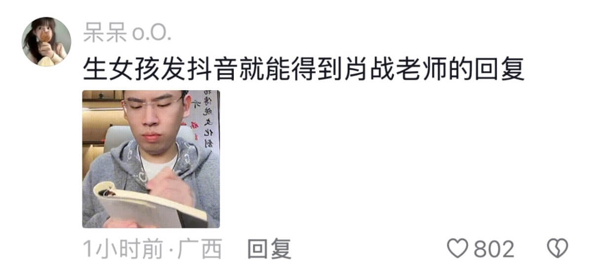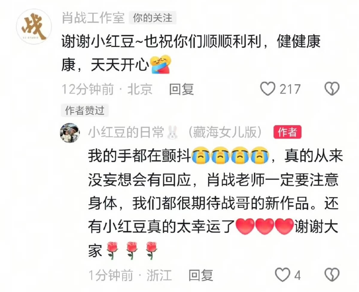 這段影片引起了很多人的關注,都認為孩子真的太可愛了!結果沒想到肖戰工作室居然空降評論區,回應了小紅豆,也送上了祝福👇