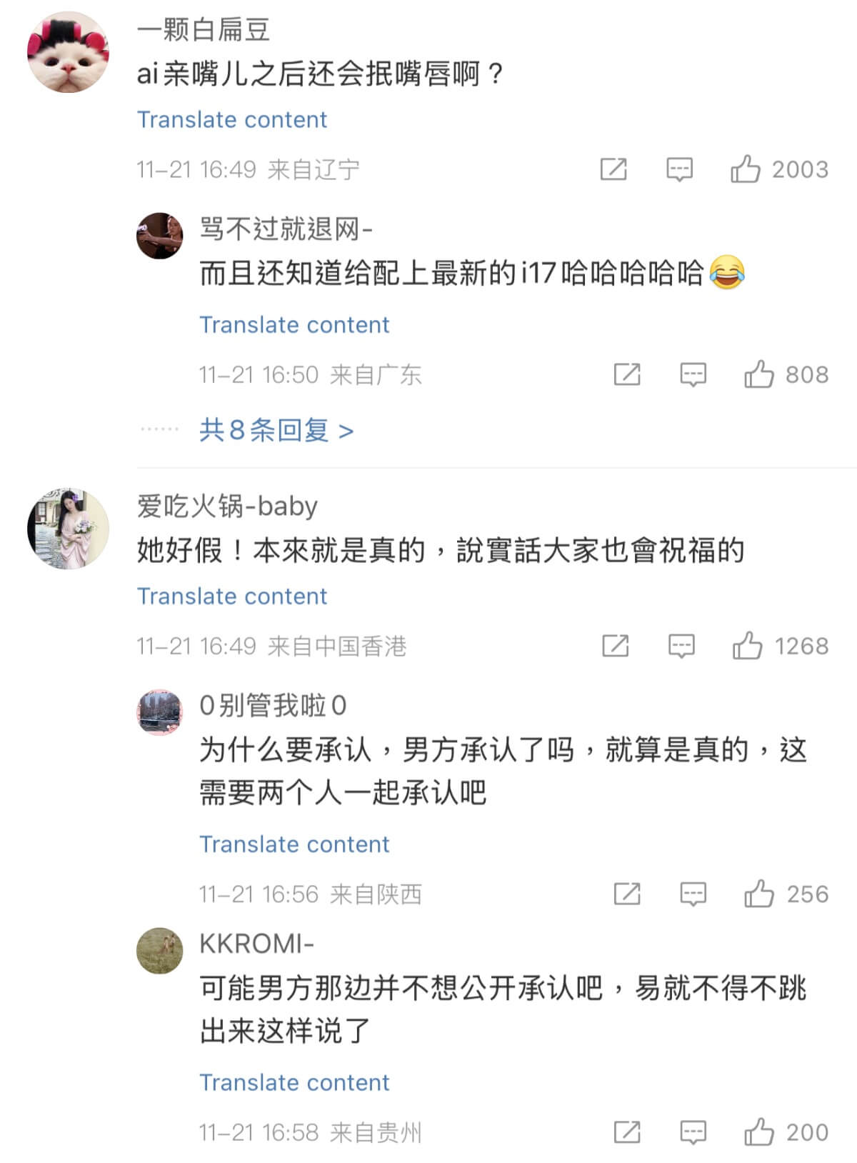 雖然兩人相差16歲,但目前看起來網友評價還是很正面的,但易夢玲的回應卻讓很多人傻眼!是噠,中國媒體聯繫到了易夢玲,她劈頭就表示接吻視頻是…Ai的👇