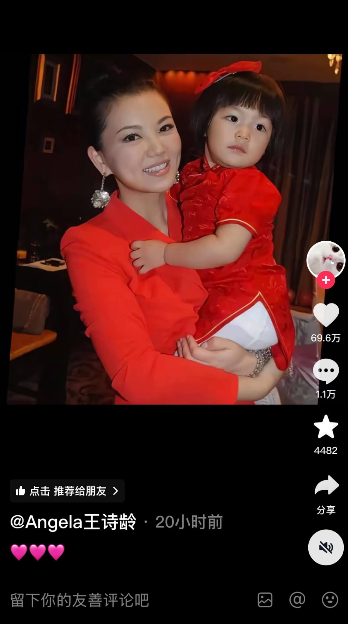 而王詩齡最新的社交平台,更新了一則和媽媽李湘的影片,影片中開始和結尾都是媽媽李湘和王詩齡,中間則穿插了小時候的自己👇