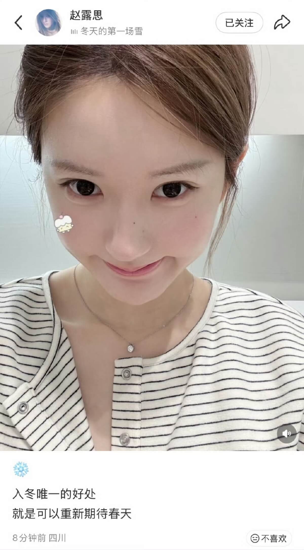 沒想到才時隔幾天,她在社交平台就給出了不一樣的回應,先來看看趙露思分享的自拍照👇