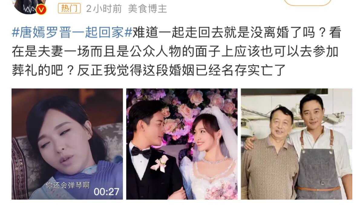 隨後羅晉經紀人發表訃告,才知道原來羅晉父親剛離世。而在23號這天,唐嫣和其父親也被拍到,現身在羅晉父親的葬禮上。