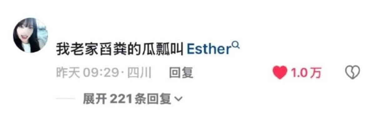 再來看看,粉絲們為了反擊,紛紛將某些物品也命名為「Esther」(虞書欣英文名字)