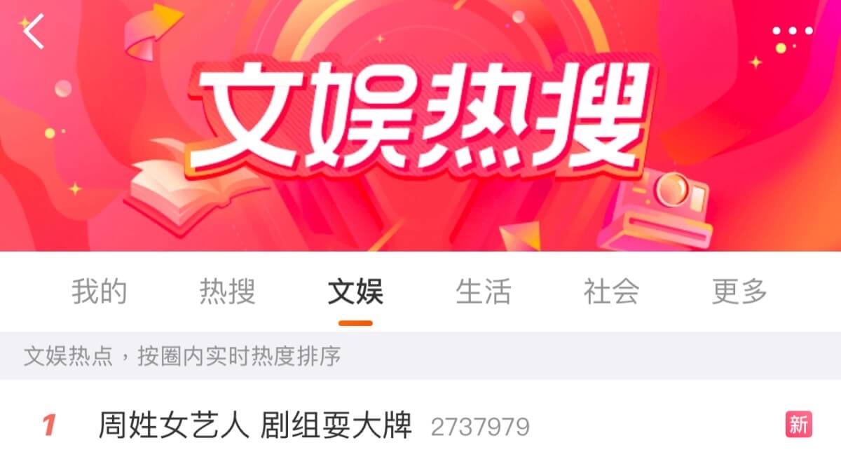 這是又曝光了?是達,有瓜主爆料,表示有個周姓女藝人,在劇組耍大牌,直接上了熱搜第一!
