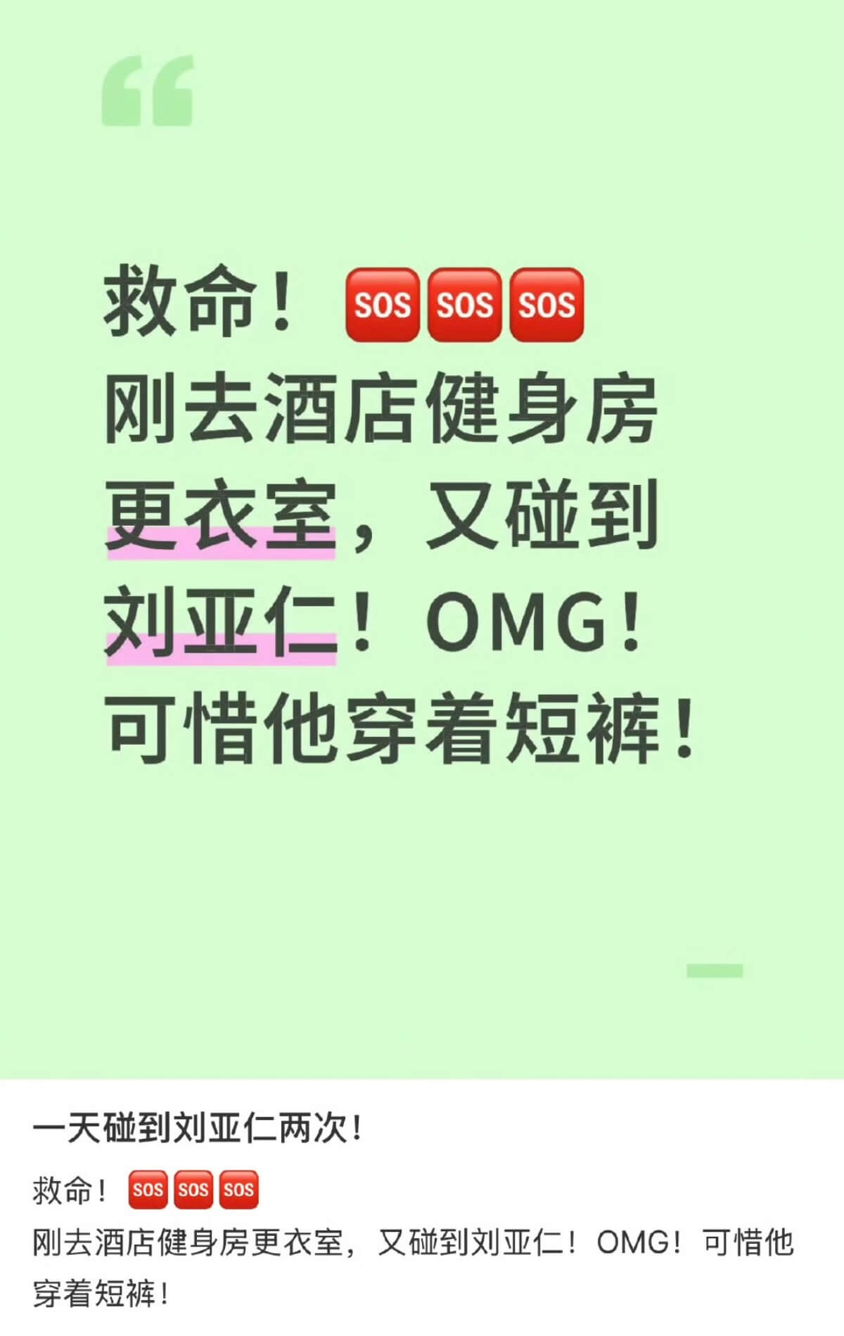 另外,還有網友表示在上海酒店偶遇劉亞仁,表示現在看起來就是「熊」,而且偶遇了兩次👇