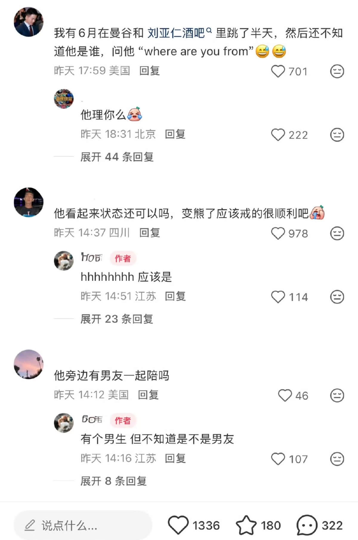 評論區還有網友表示,自己在曼谷也偶遇過劉亞仁,還和他跳了半天舞!原Po也提及他看起來狀態不錯,身邊有一個男生陪著👇