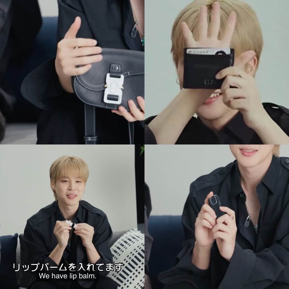 當中Jimin公開的隨身物品,包括了潤唇膏、車鑰匙,還有一個卡包👇