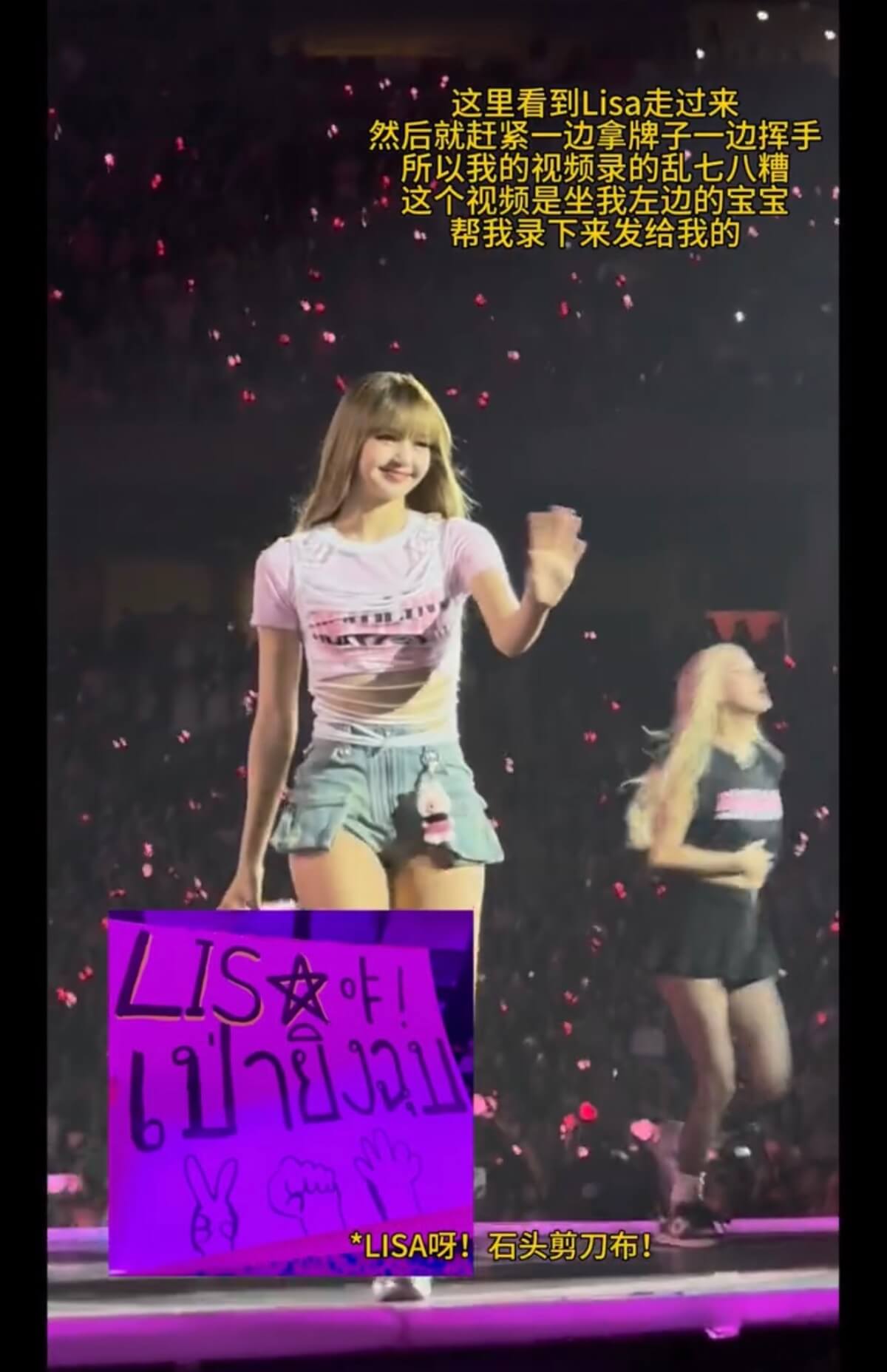 隨後,和LISA一起玩遊戲的粉絲,發出了第一視角的片段,全網才得知了真相!!!原來,這位網友準備了大字報,用泰文讓LISA和自己玩「剪刀石頭布」!