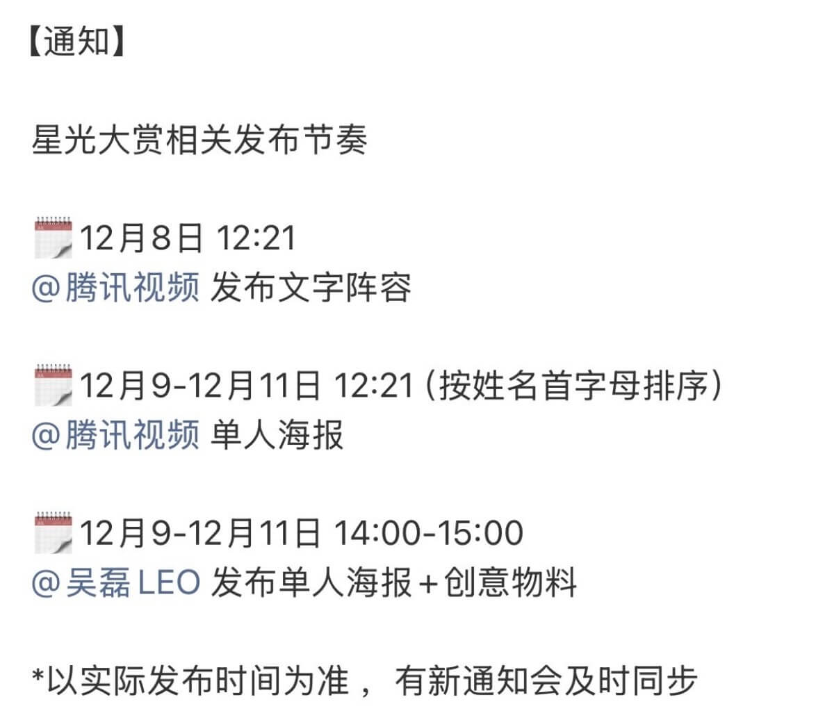 而目前已經官宣將出席「星光大賞」的部分藝人名單如下,你又期待誰呢?