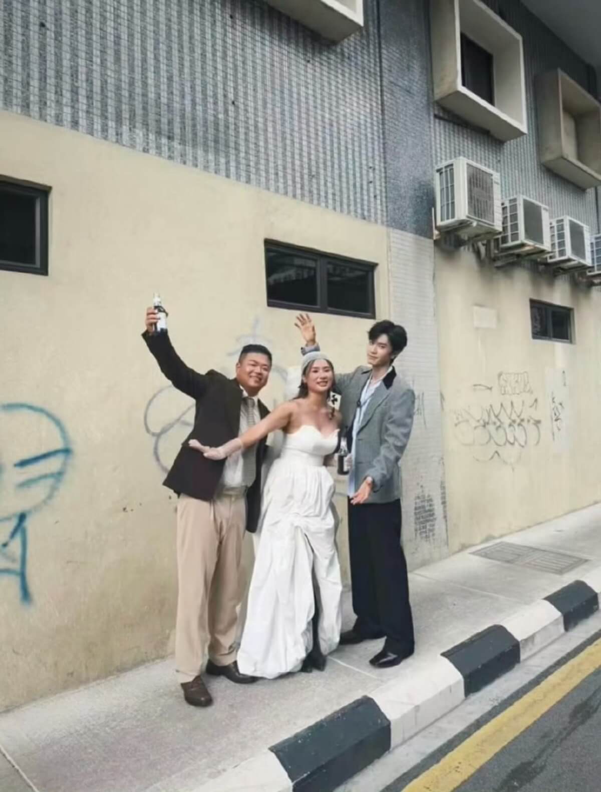 結果陳哲遠不但邊走邊鼓掌送上祝福,還很大方的和準新娘合照!