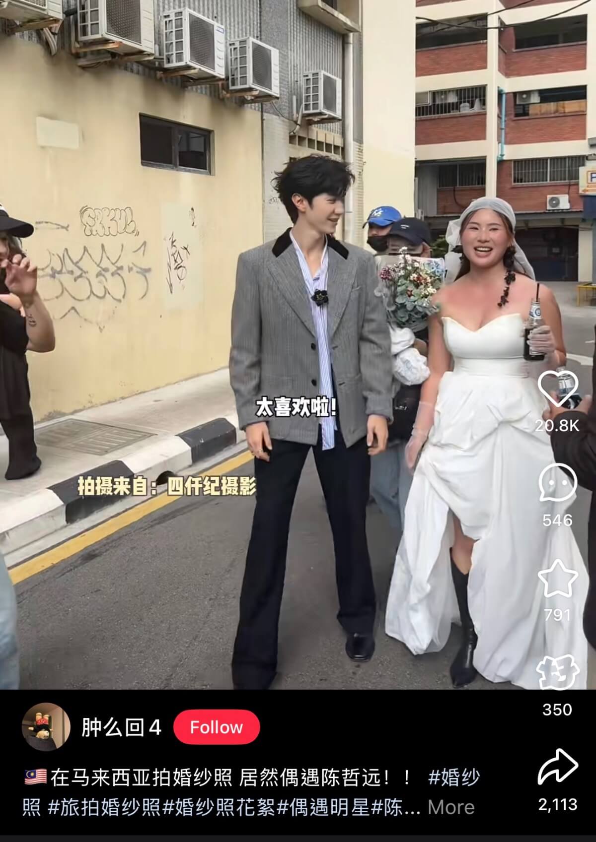 只不過沒想到就在拍攝過程,居然還有特別幸福的偶遇!是噠,有中國網友飛往吉隆坡拍攝婚紗照,結果就這麼華麗麗的遇上了在同地點拍攝的陳哲遠!