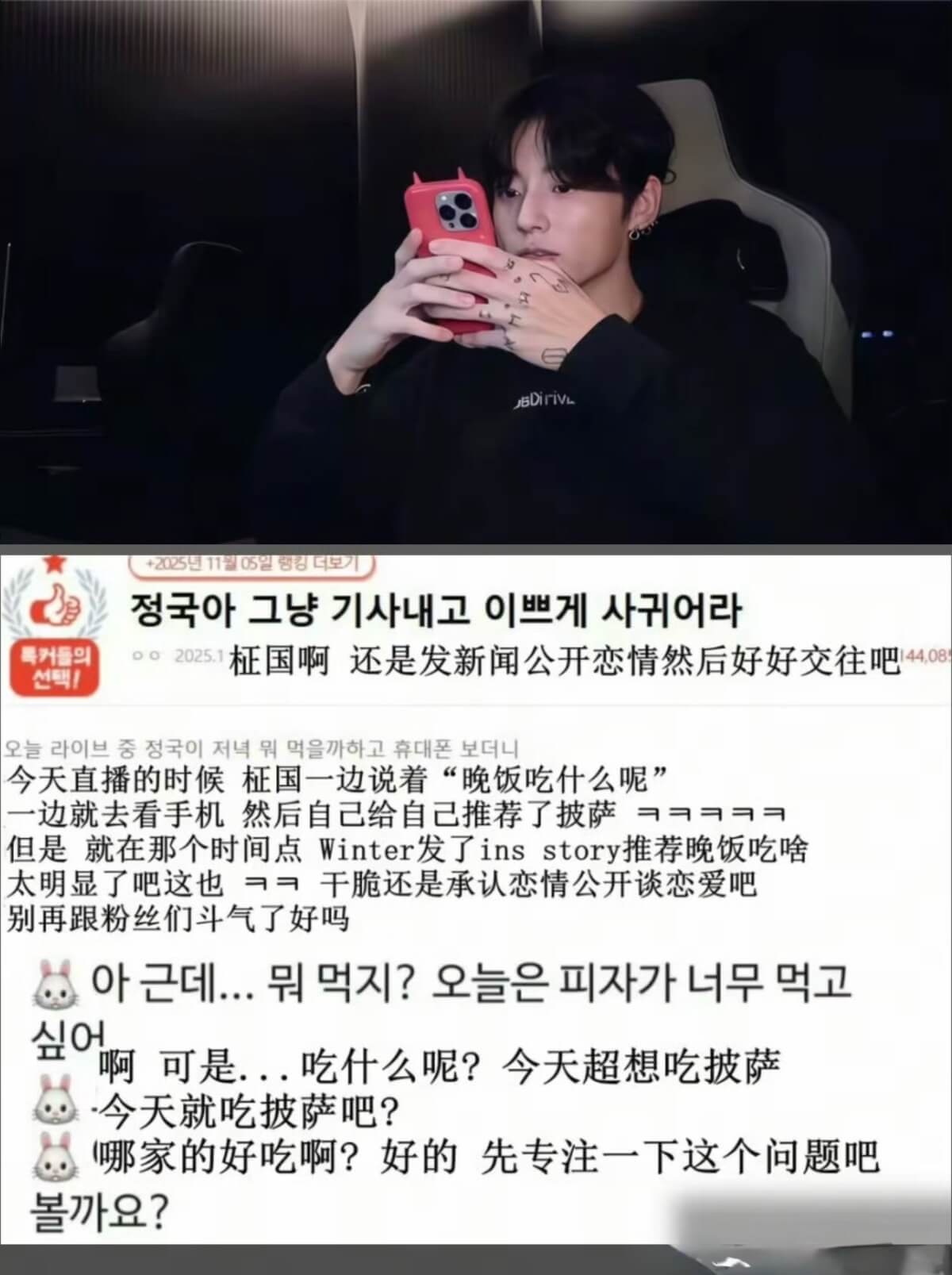 結果隨後田柾國直播中就說想吃pizza,當時在韓網就引起熱議👇