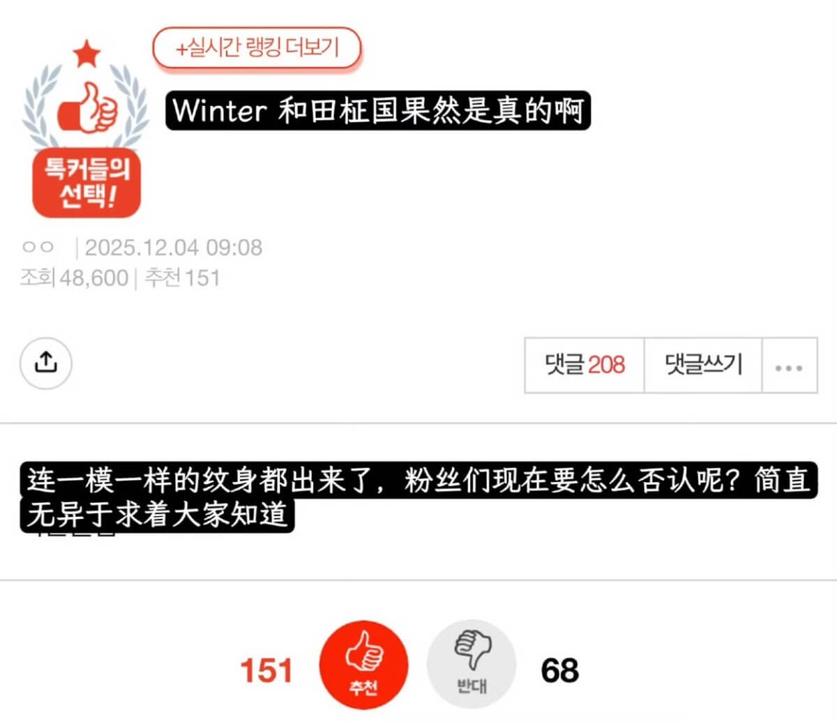 隨著同款紋身曝光,韓網立刻就有相關討論👇