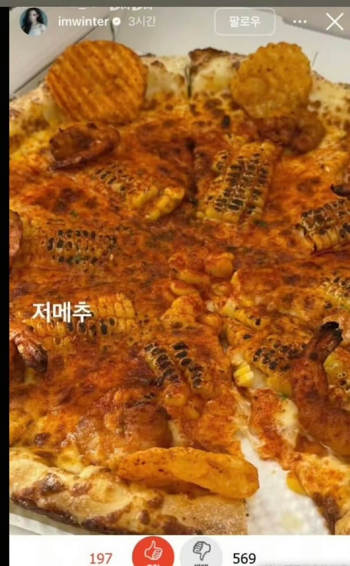 11月份,Winter在快拍曬了自己吃pizza👇