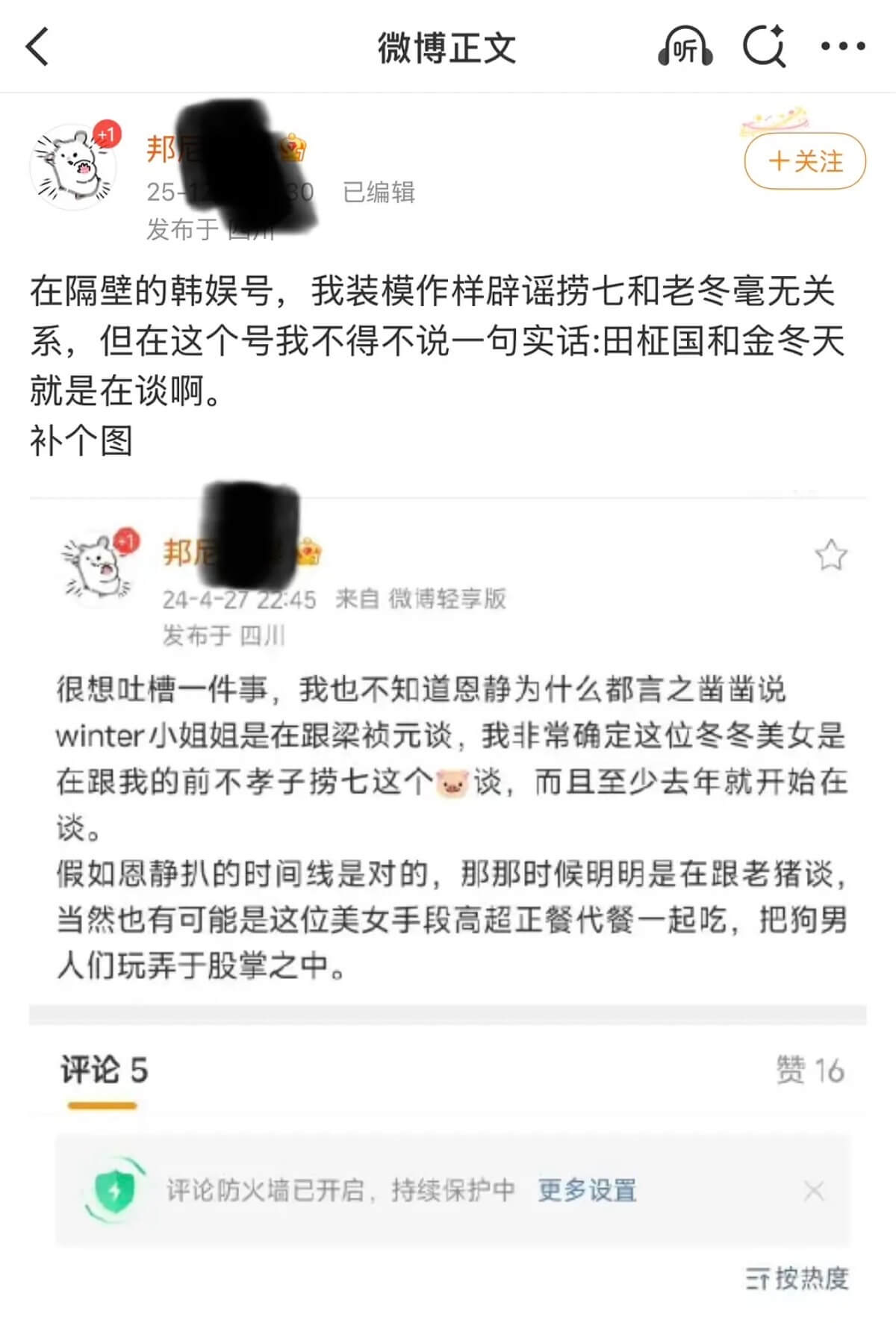 最經典的是,Winter的大粉早在2024年就知道,自己家的偶像的戀愛對象,就是田柾國👇
