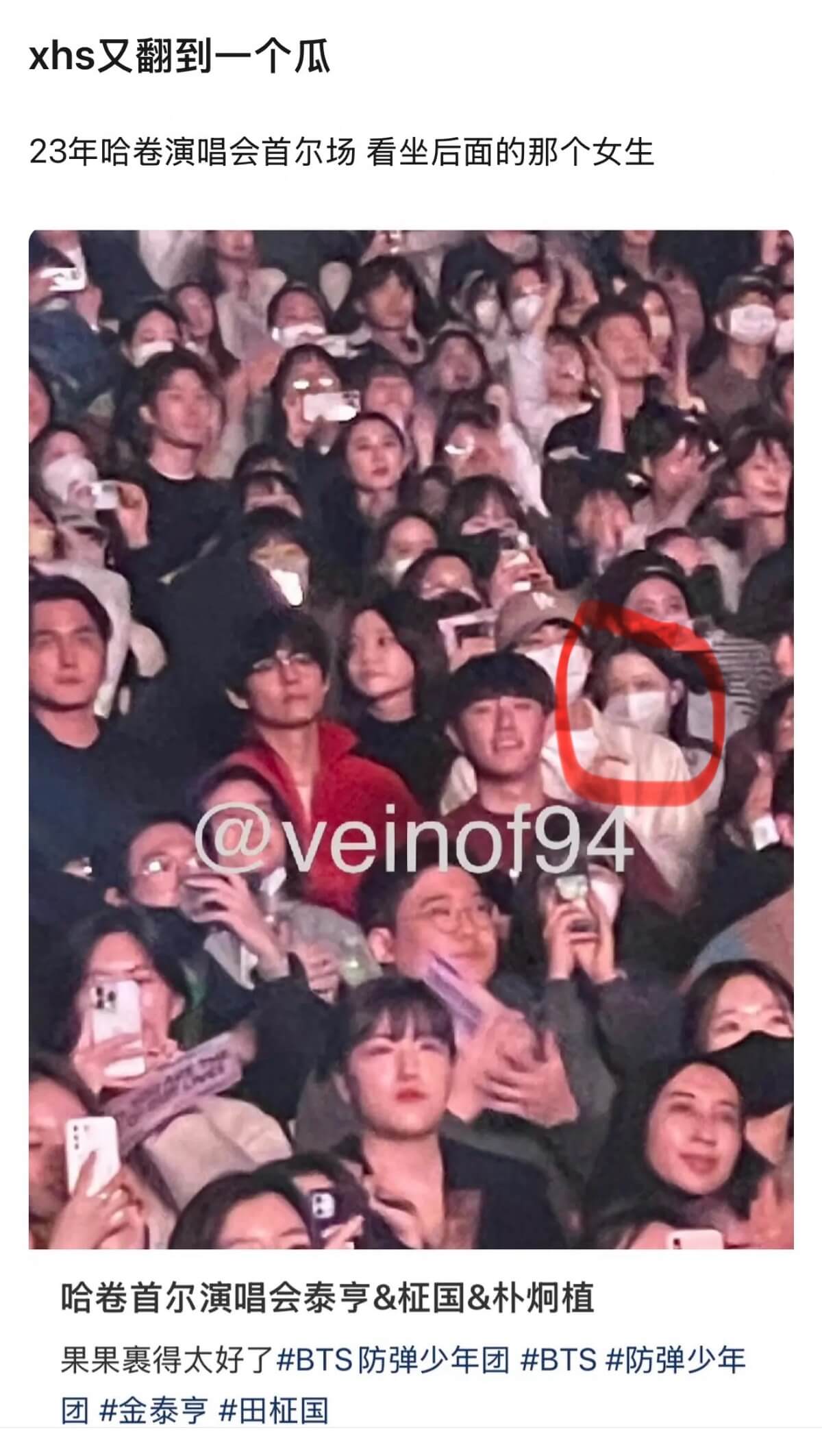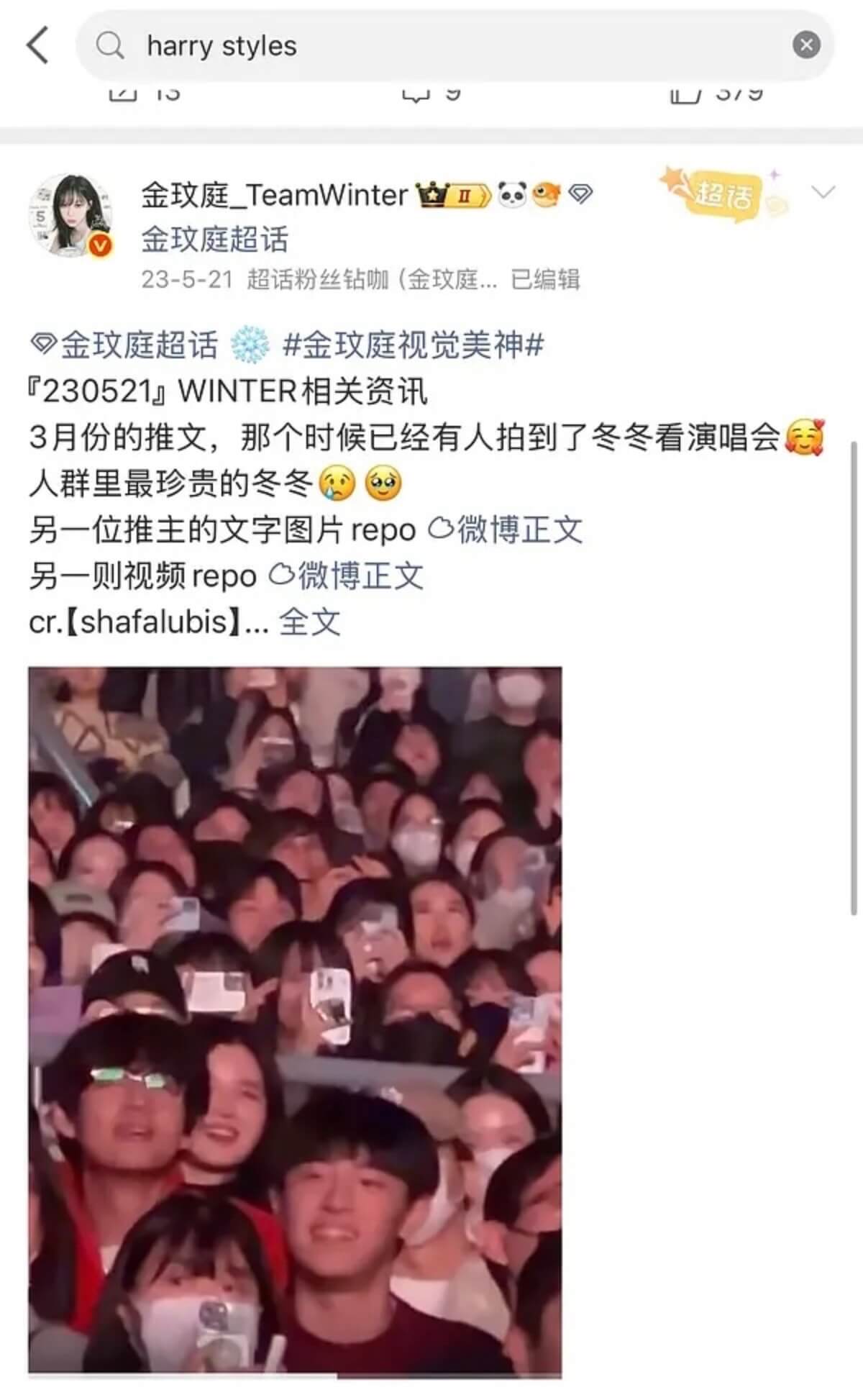 是達,來看看,在2023年田柾國就被發現和金泰亨等人出席了Harry Styles的演唱會,結果現在網友發現,坐在他身後的就是Winter 👇