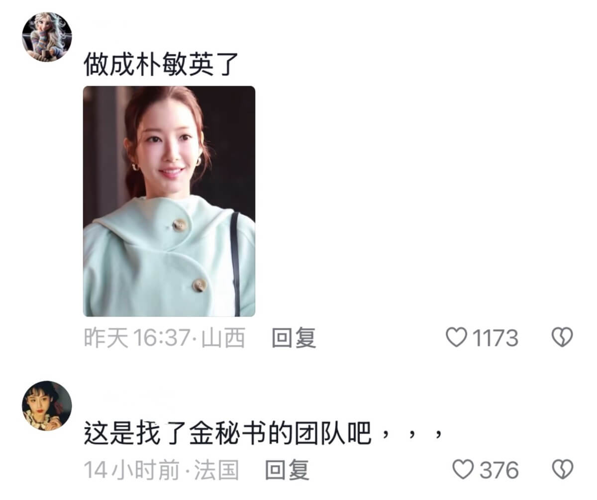 有些網友認為現在的她,都撞臉朴敏英了👇