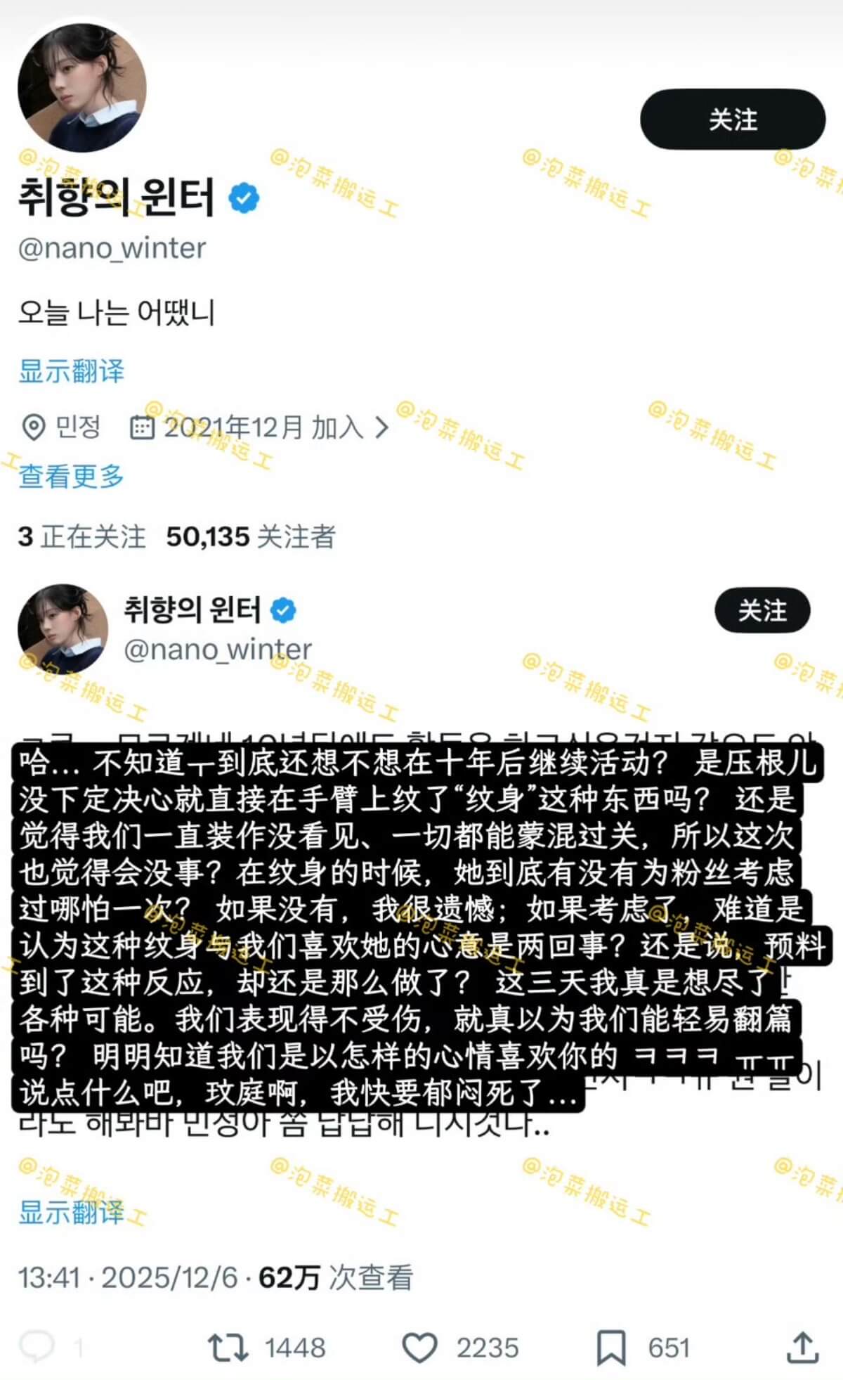 現象級推文!粉絲發推狂罵田柾國破七百萬瀏覽!Winter站姐們也發聲!