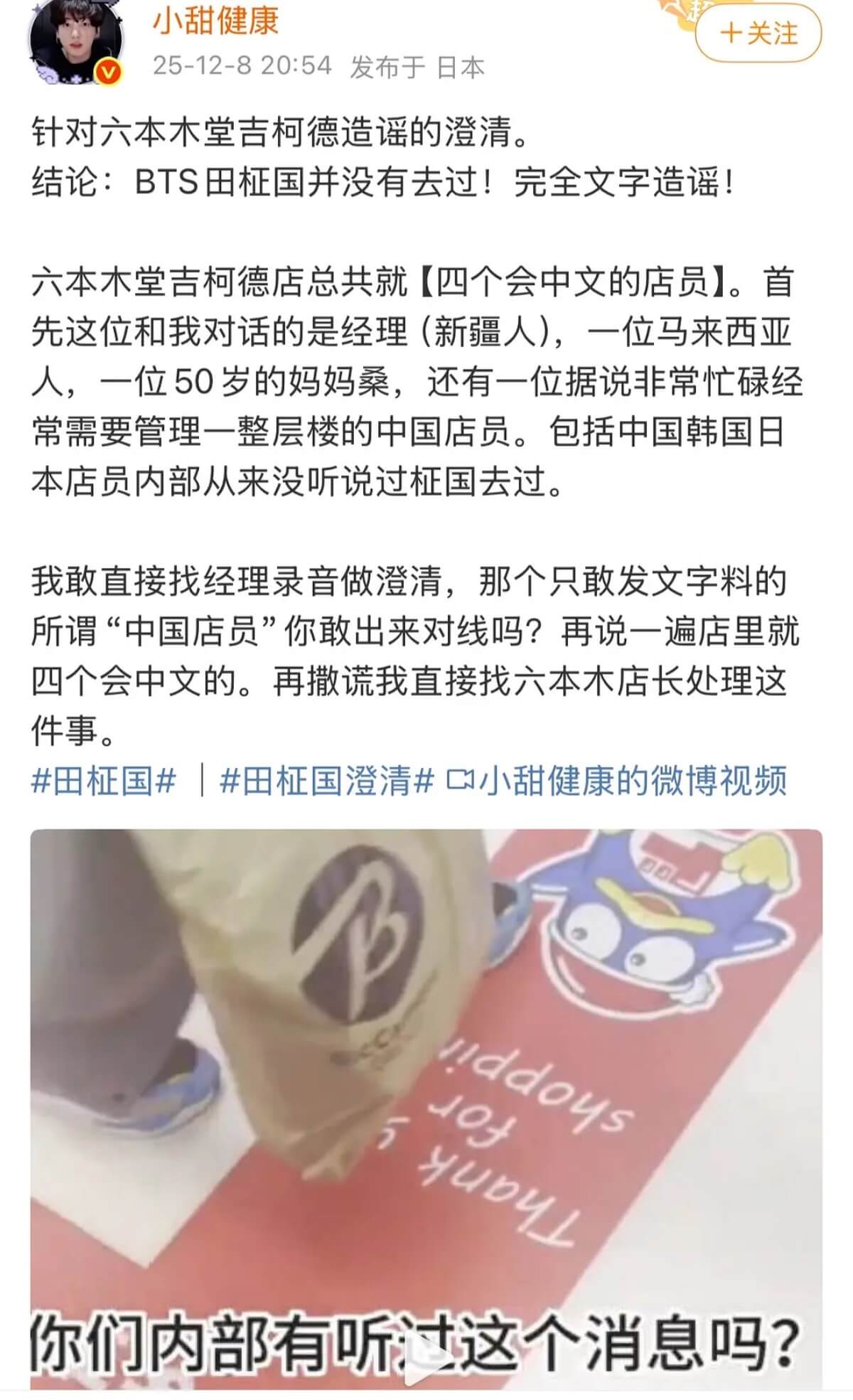 後續來了,有田柾國粉絲真的前往六本木這家唐吉訶德,實地「採訪」店員,希望可以還田柾國一個清白👇