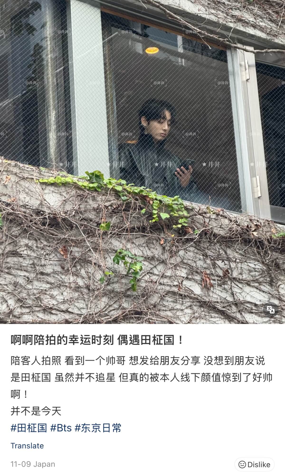 而恰好當時就有網友在日本東京偶遇田柾國👇