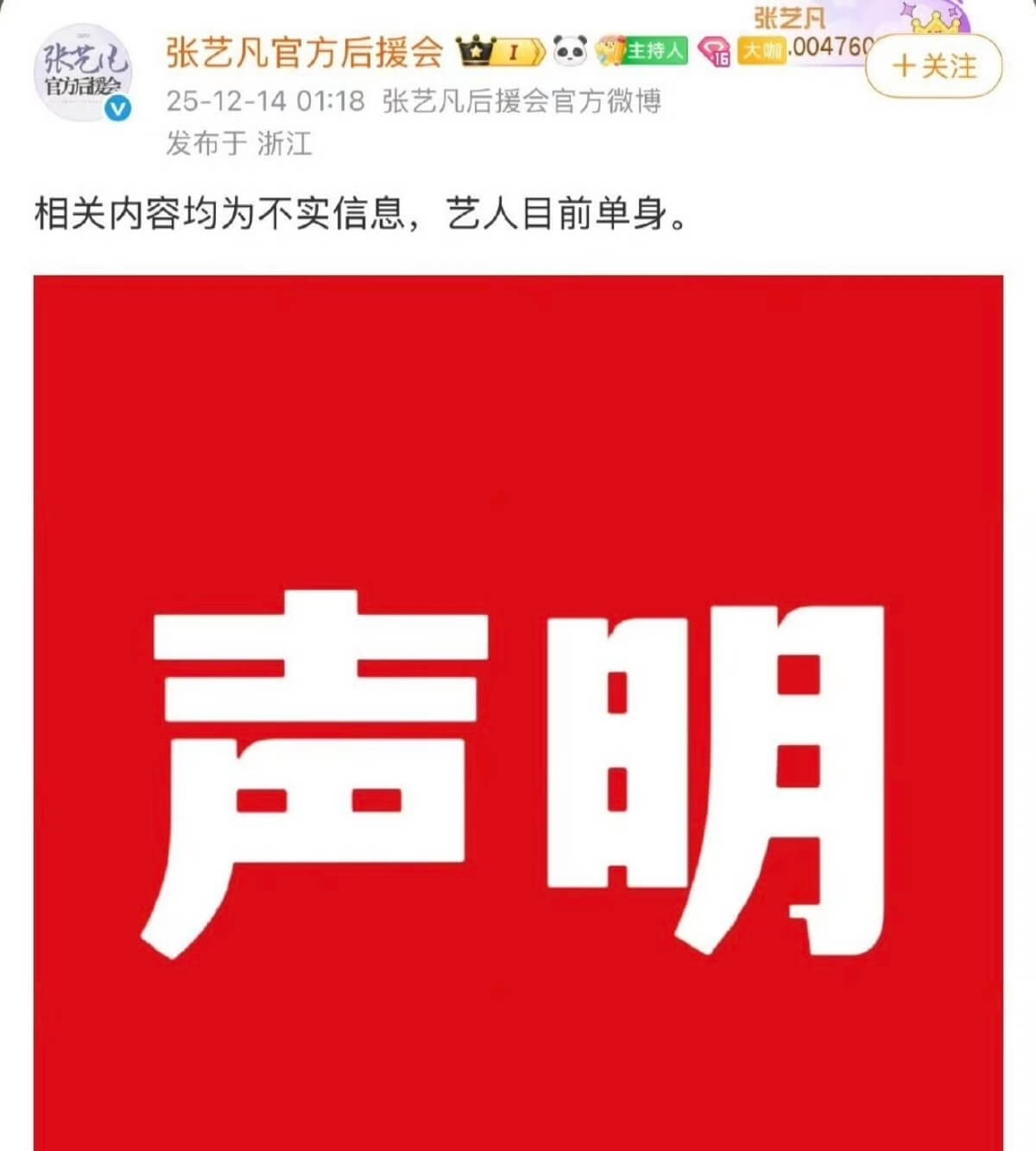 沒想到不但演藝事業停擺,就連感情生活也受影響?是噠,范世錡緋聞女友張藝凡,其後援會突然在14號凌晨闢謠了兩人戀情👇