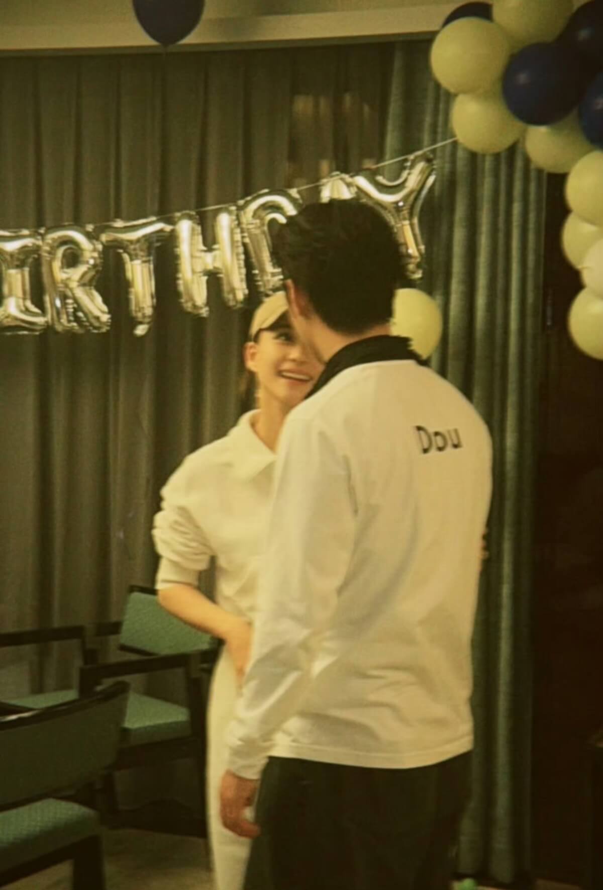隨後,就有兩人的朋友公開了竇驍生日會現場,只見夫妻倆站在C位合照👇