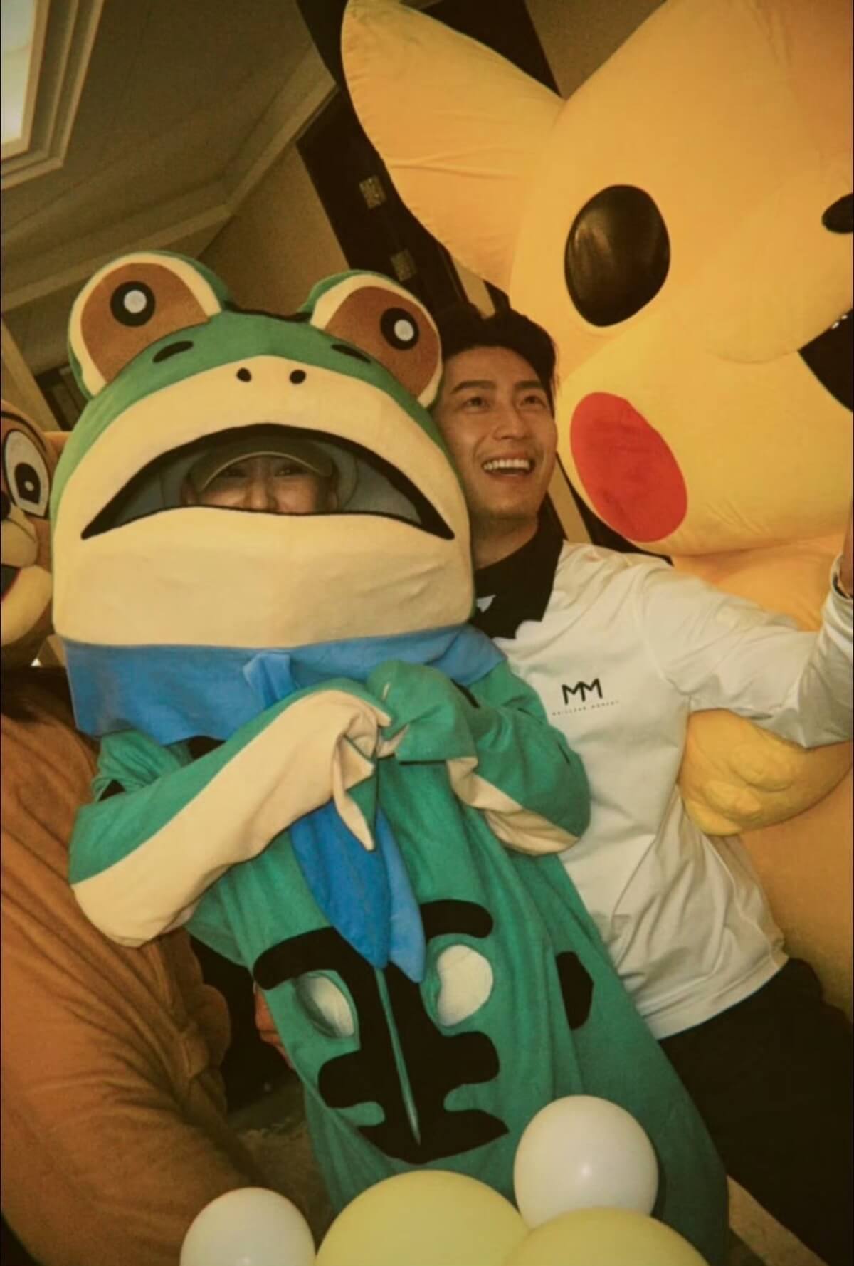 何超蓮還扮成了青蛙為老公慶生,超可愛的👇