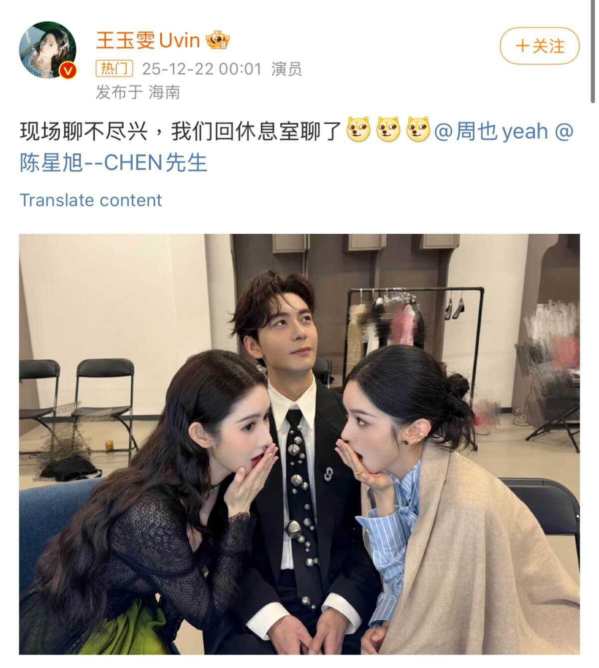 但最最出圈的,還是我們的周也和王玉雯!為什麼呢?答案是,你看看這兩人,直接無視坐在中間的陳星旭,聊得很high!