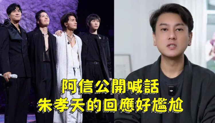 沒想到之後朱孝天就在粉絲群回應阿信:「他說好幾次了,可是我這邊沒有收到任何消息……場面話,聽聽就算了吧……」該截圖被公開後迅速發酵。
