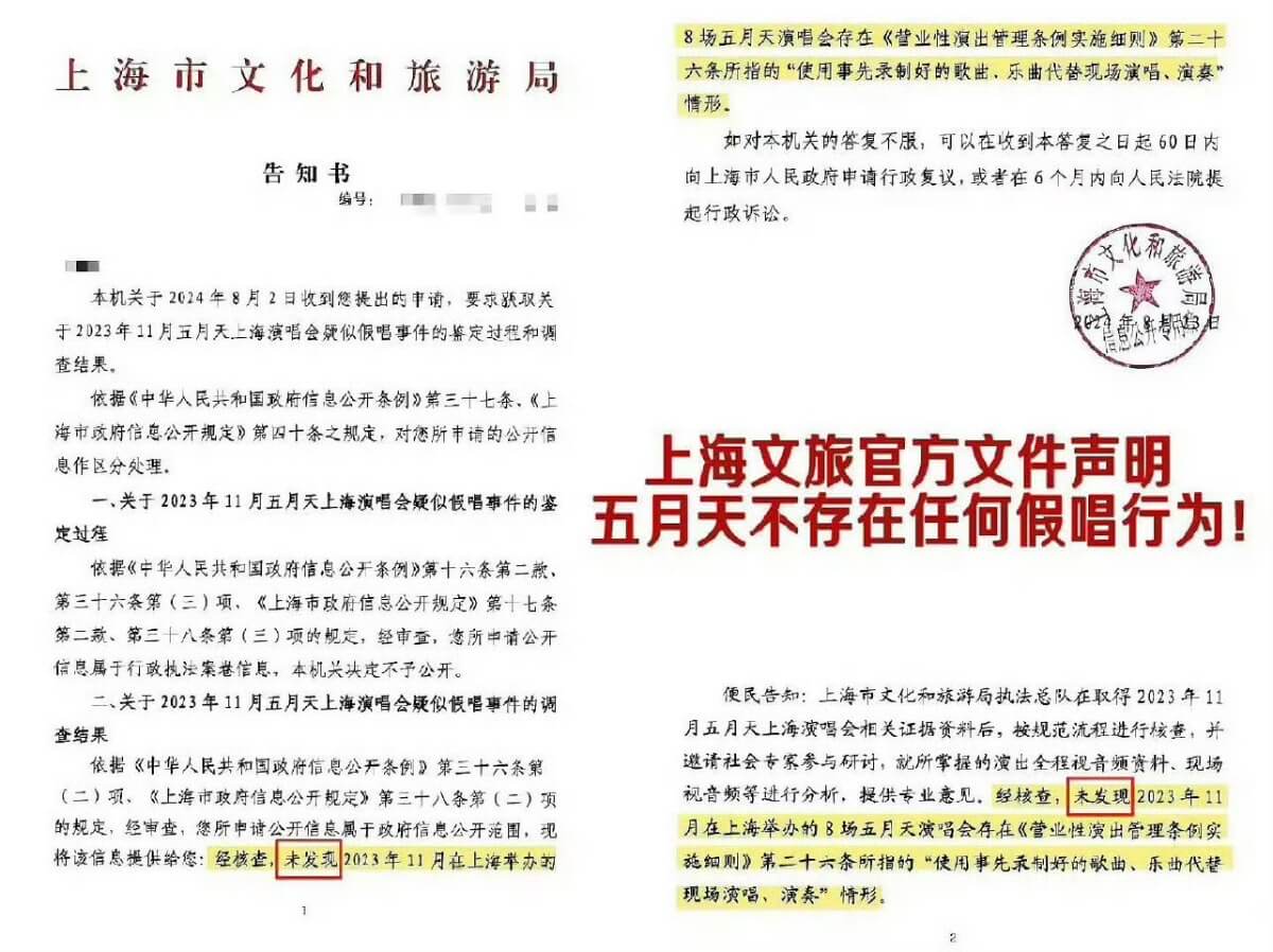 朱孝天指控的這些罪狀,可以說每一條都很直接明涵,五月天之前曾陷入「假唱疑雲」,但隨即得到了中國官方文旅的澄清公文👇