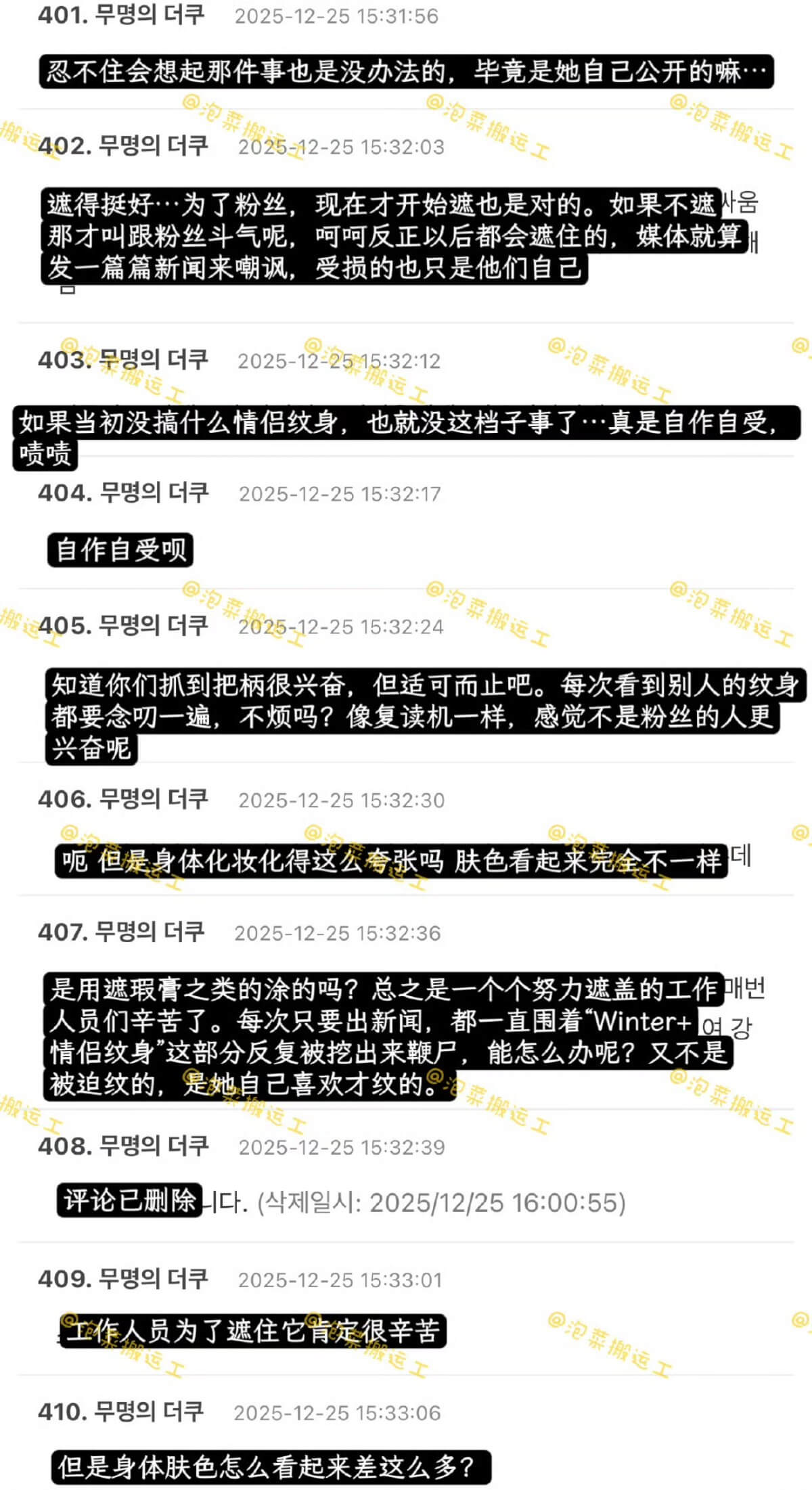 此外,此次Winter出席活動時,被指特意遮擋了「情侶紋身」,在韓網引起了熱議👇