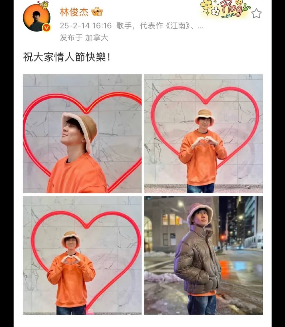 最經典的是,還有網友扒出了原來早在2025年的情人節,JJ就在暗戳戳曬恩愛~先來看看他在情人節發的貼文👇