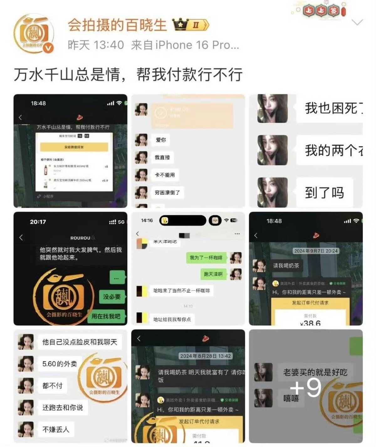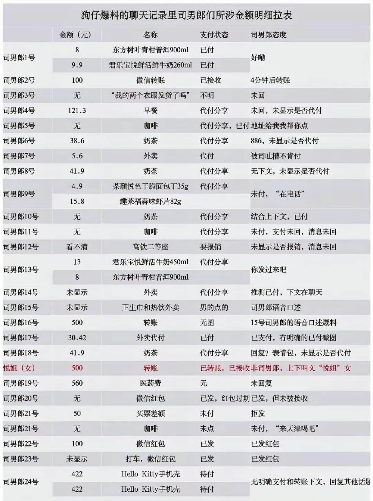 但網友總整理了一下,這些未標明聊天對象的記錄顯示,司曉迪都讓對方請客奶茶之類的,這麼多聊天記錄整理下來,金額也只有幾千塊,狗仔反而被網友吐槽👇